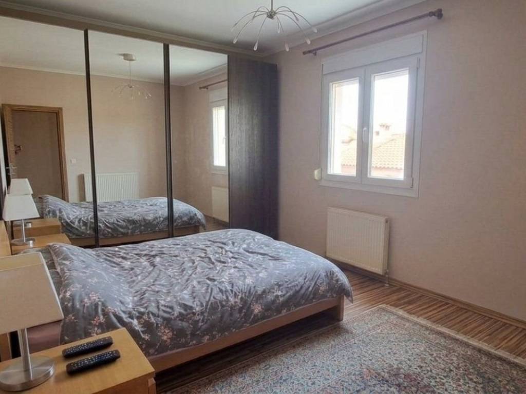 In Tagarades, in a quiet location, on the edge of the settlement A corner apartment of 125 sq m is for rent. Is on the 1st floor of a 2-story building, built to excellent specifications. The apartment has ergonomics and consists of a living room, separate kitchen, 3 bedrooms, bathroom with loft and small storage room within the apartment. It is sunny, bright with a view of the surrounding area. Equipped with a fireplace, armored door, large closets, etc. It has individual heating with an oil burner and low consumption, due to the insulation in the walls. located 200 m from the center of the village Tagarades, the village where the property is located, is a settlement of approximately 3000 inhabitants at the 18th km of the National Road from Thessaloniki to Moudania and 2 km left from the National Road. Its great advantage is its location. It is just 12 km from Eastern Thessaloniki in the wider area of Thermi - International Airport. Within the village there are shops to serve all basic needs. It is served by urban and municipal transport. The village is 6 km from Thermi, the seat of the Municipality, where there are Public and Municipal services, a very well-organized health center and all banks have branches. 5 km from the international A/W of Thessaloniki. Many large shopping centers, such as Mediterranean COSMOS, IKEA, Practiker, Leroy Merlyn, Carrefour, are within walking distance.