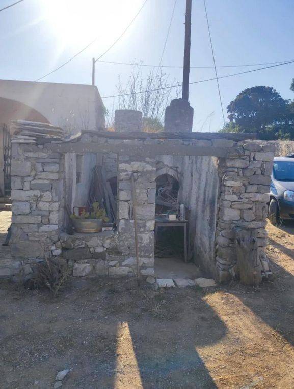 Υπέροχο οικόπεδο εντός οικισμού, γωνιακό με αναστηλωμένα ερείπια από φούρνο, στέρνα και πηγάδι. Η είσοδος είναι μια αναστηλωμένα καμαρα με πλακόστρωτο κάτω.