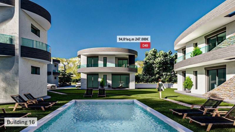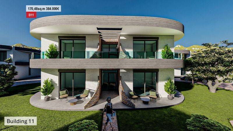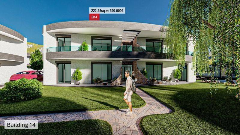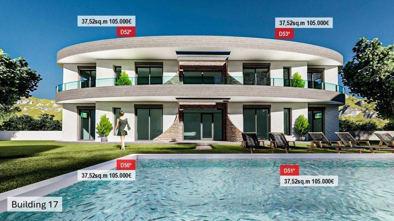 • 14 Ground floor apartments from 49.90 sq.m to 57.94 sq.m , consisting of a living room with kitchen, 2 bedrooms, and 1 bathroom.