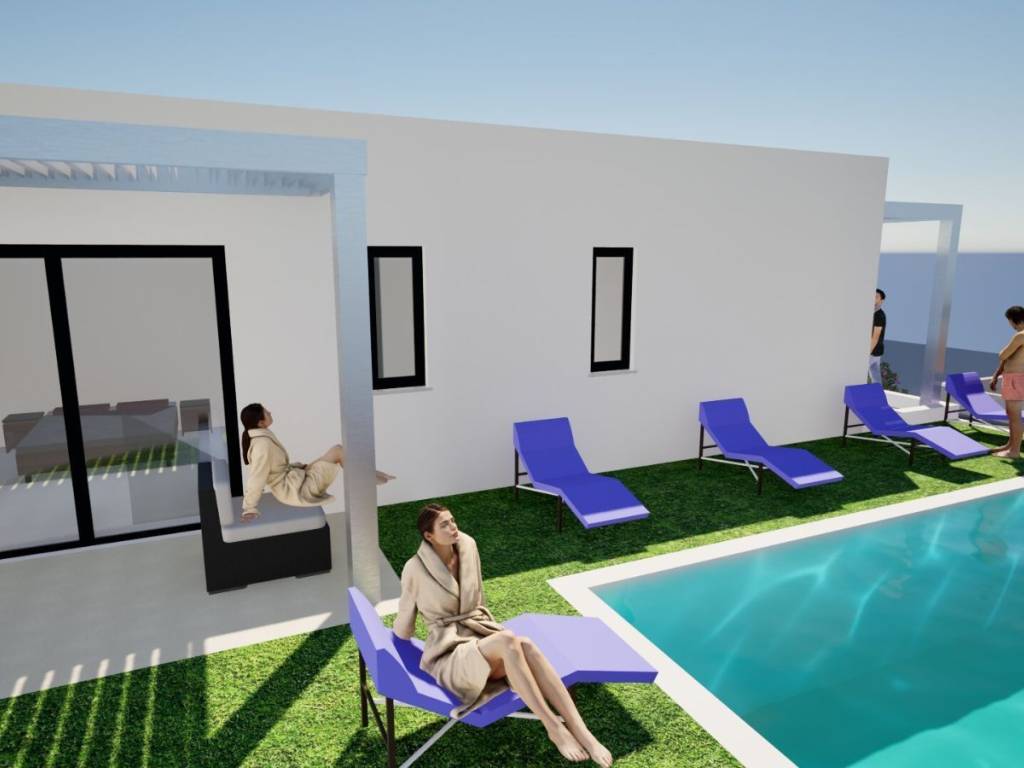 Asomatos (Rethymno) for sale: detached house 79.5 sq.m. on a 403 sq.m. plot with unobstructed views Property includes 2 bedrooms, 3 bathrooms, a solar water heater, and air conditioning. The house also features a covered garage with a pergola, a 25 sq.m. swimming pool, 33 sq.m. of pergolas around the building, and a 29 sq.m. semi-ground floor storage room. Delivery: One year from the date of the deposit. Payment terms: The payment will be made in 4 installments. With the first installment (the deposit), the transfer of the plot is completed, and the remaining three installments are paid according to the progress of the construction work. price 290.000 euros (26013) SAMSON ESTATE 6970038721 SAMSON BROTHERS brokerage office operates within the framework of the Greek and European law on brokerage. The details of the advertisements are based on information provided by the client, the position and the mark on the map are indicative.