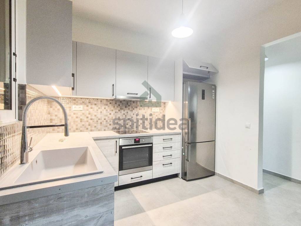 Apartment of 80sqm on the first floor of an apartment building built in 1980, fully renovated in 2026. It consists of an open-plan living room and kitchen (equipped with all necessary electrical appliances), 2 spacious bedrooms and a bathroom. It has aluminum frames with double glazing and screens, a security door, autonomous natural gas heating, 3 air conditioners and a comfortable corner balcony with awnings. It is located in a good location near the local market of Vrilissia. (S30572)