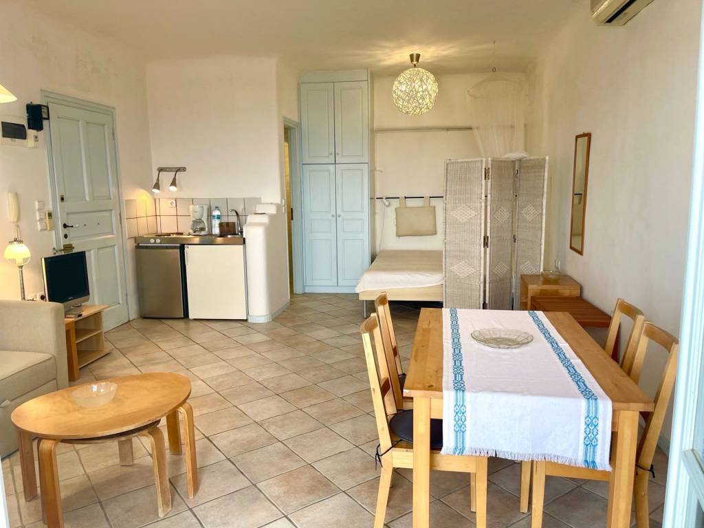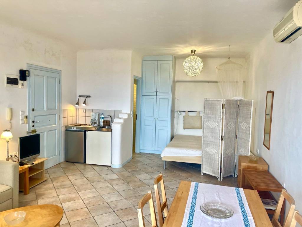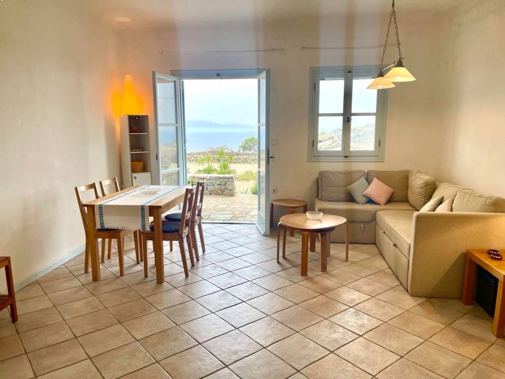 Πληρως εξοπλισμενο,κλιματισμος, σιτες,θερμικα μονωμενο[διπλα τζαμια κλπ]καταπληκτικη θεα θαλασσα Super Paradise,μεγαλη βεραντα,δωρεαν internet WiFi υψηλης ταχυτητας,μυκονιατικη αρχιτεκτονικη.Για Σεζον.Δυνατοτητα διαμονης μεχρι 3 ατομα.Τιμη 8000 ευρο