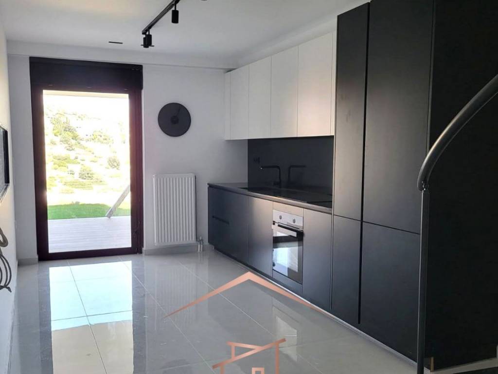 Luxury Maisonette in Agios Nikolaos, Anavyssos Μaisonette of 111 sq.m. ,2004,for sale in the premium settlement of Agios Nikolaos, Anavyssos, just a stone's throw from the coast. The main entrance is located on the ground floor of 47.67 sq.m., which hosts a bright living area, a home office, a bedroom, and a guest WC. An internal staircase leads to the lower level of 63.03 sq.m., which consists of a spacious open-plan kitchen and dining area, along with a master bedroom featuring its own walk-in closet and master bathroom, as well as an additional WC and a storage room. This residence is characterized by high-quality construction, featuring energy-efficient aluminum window frames with double glazing and screens, elegant wooden floors, and a reinforced security door for maximum protection. Completed in 2023, this property is brand new and uninhabited. The interior is fully equipped with modern electrical appliances, air conditioning, a solar water heater (boiler), and generous built-in wardrobes, ensuring absolute functionality. The property is secured with a pre-installed alarm system and includes private parking space. The highlight of this residence is the outdoor area, as all main rooms lead to a covered veranda and a large private garden of 220 sq.m., offering the potential for a private swimming pool installation. This is a complete property that perfectly combines luxury with tranquility, located only 500 meters from the beach. Price: €300.000. VIA ATHENS REAL ESTATE, contact phone: 2121030916, +306937006261, email: info@via-athens.com
