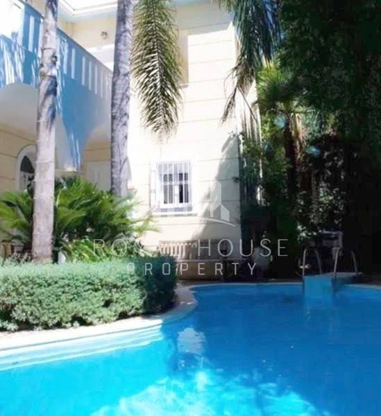 Alimos, Pani - Villa 360sqm plot 400sqm, fully furnished, bedrooms 5, levels 3, ground floor, very good condition, year built 2003, energy class C, living room, kitchen, 3 bathrooms, heating type: autonomous (oil), air condition, parking, quiet, dual aspect apartment, luminous, corner, frontage, painted, storage space, solar heater, fireplace, balconies, garden, aluminum frames, door screen, wood & marble floors, without common charges, luxurious, swimming pool, internal staircase, barbeque, gym, residential zone, special offer.