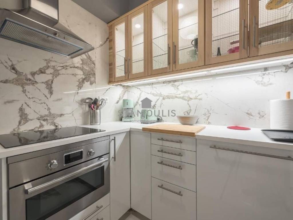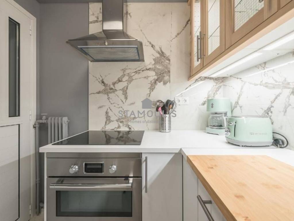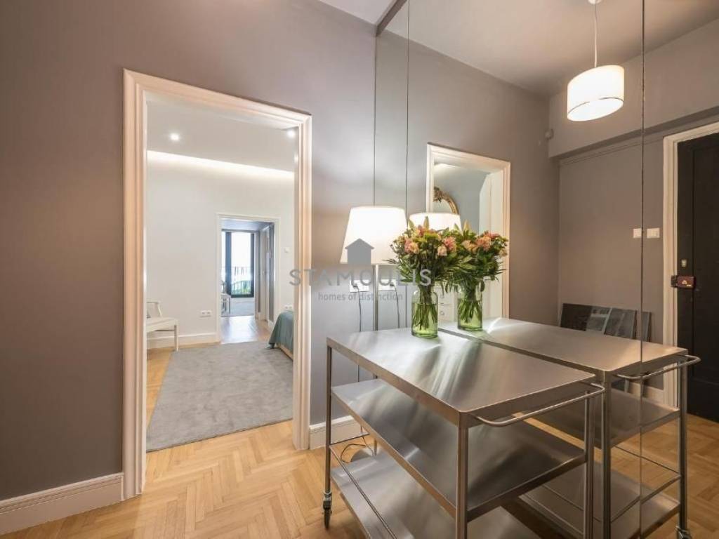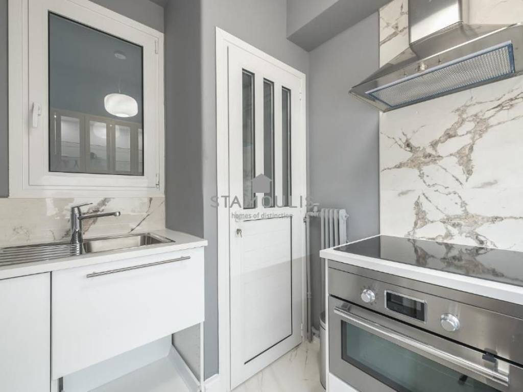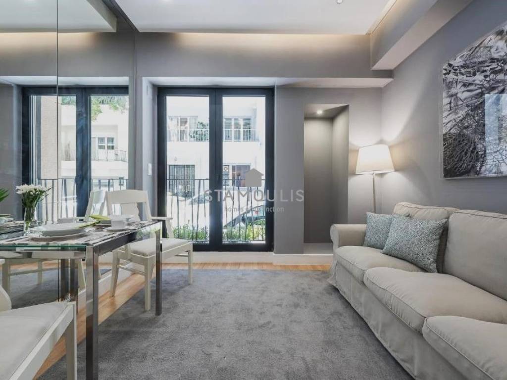 Fully renovated ground floor studio of 56 sq.m, near Kolonaki Square. It has 1 bedroom, bathroom, living room, kitchen, wood striped floors, air condition, security door and aluminum double-glazed windows. Also suitable for professional use. Available furnished for a minimum period of 1 year at a price of 1,100 euros.