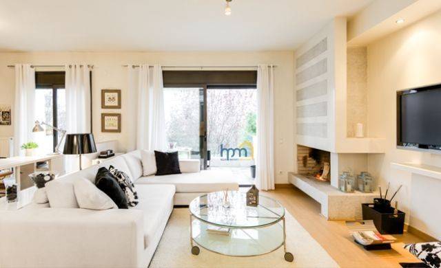 Thessaloniki Suburbs Pylaia for sale , Surface 100.0 sq.m, Ground floor Maisonette , built in 2008 in 2 levels,consists of 1 living room, 2 bedrooms, 2 master, 1 kitchen, 1 WC, 1 toilet, 1 parking, ( ). The heating system is autonomous - Natural Gas , A/C and fireplace.It also has , secure door, CCTV,balconies, internal stairway, no shared costs, is corner, Awning, Lawn,trees, garden,furnished. Located near to . Price (265.000€) Property Code 1019-1247 Hellas Property Management Μητροπολίτου Γρηγορίου Κυδωνιών 6,