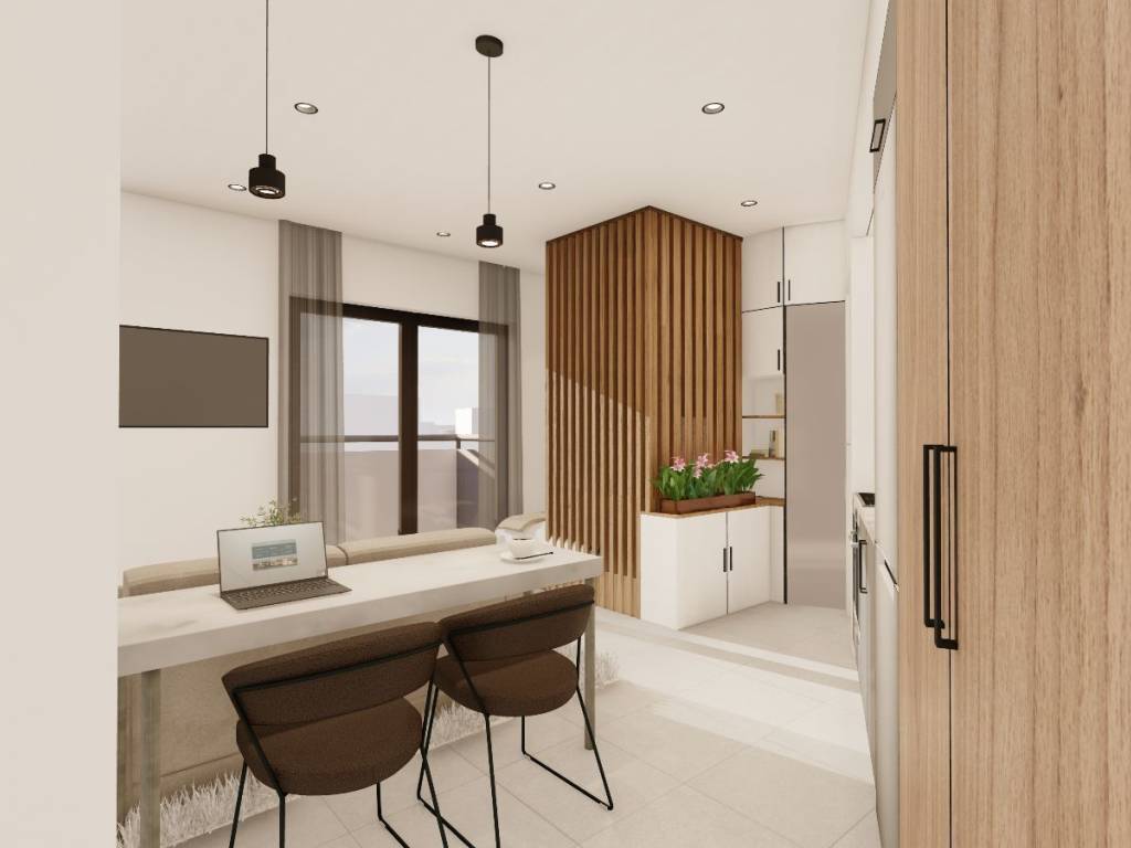 Περιγραφή Το νέο έργο είναι μία εννιαόροφη οικοδομή επί της Λεωφόρου Κωνσταντίνου Καραμανλή. Η οικοδομή αναγείρεται σε οικόπεδο εμβαδού 240 τ.μ. στο οποίο έχει συνιδιοκτησία η εργολάβος. Η θέση του οικοπέδου είναι προνομιακή, πολύ κοντά στην ανατολική είσοδο της πόλης. Έχει στην άμεση γειτονία του ένα πολύ καλά οργανωμένο δίκτυο πολεοδομικής υποδομής. Η περιοχή του νότιου Χαριλάου είναι μία περιζήτητη περιοχές για κατοικίες στη Θεσσαλονίκη. Η λεωφόρος Κωνσταντίνου Καραμανλή είναι ο βασικός άξονας εισόδου στην πόλη από ανατολικά. Έχει πλάτος 30 μέτρα συν εκατέρωθεν προκήπια πλάτους 3 μέτρων. Η όψη του οικοπέδου είναι δυτική και εξασφαλίζει πολύ καλό ηλιασμό και αερισμό στους χώρους των κατοικιών ανεξαρτήτως ορόφου. Οι υψηλοί όροφοι έχουν εξαιρετική θέα. Γίνεται μία κατασκευή με τις υψηλότερες προδιαγραφές, σε ότι αφορά το σχεδιασμό, τις εργασίες και τα υλικά που χρησιμοποιούνται. Στόχος είναι η κατασκευή σύγχρονων οικογενειακών κατοικιών με μοντέρνα αρχιτεκτονική επίλυση, ώστε να εξασφαλίζεται η βέλτιστη αξιοποίηση και λειτουργικότητα του χώρου. Η οικοδομή θα παραδοθεί στο τέλος του 2027. Διατίθενται προς πώληση Studio με εμβαδόν 36 τ.μ., που αποτελούνται από δωμάτιο – σαλοτραπεζαρία ενιαίο χώρο και λουτροαποχωρητήριο. Τιμή πώλησης που αρχίζει από 110.000 Ε. Ως παρακολούθημα μπορεί να δοθεί αποθήκη στον υπόγειο χώρο του κτιρίου. Η πρόσβαση στο υπόγειο γίνεται απευθείας με τον ανελκυστήρα. Το κτίριο θα ανήκει σε ενεργειακή κλάση A με συνέπεια το χαμηλό κόστος θέρμανσης και ψύξης. Τα ιδιαίτερα χαρακτηριστικά του είναι : - Εξωτερική μόνωση-θερμοπρόσοψη η οποία περιβάλλει το κτίριο με πάχος 10cm - Κουφώματα αλουμινίου της ALUMIL με θερμοδιακοπή και διπλό ενεργειακό υαλοπίνακα - Θέρμανση με λεβητάκι αερίου ή αντλία θερμότητος - Κουζίνα επώνυμων Ιταλικών κατασκευαστών - Μία ντουλάπα σε κάθε υπνοδωμάτιο - Πλακίδια δαπέδου της εταιρείας MARAZZI - Θωρακισμένη πόρτα εισόδου - Εσωτερικά κουφώματα της εταιρείας Κ59 - Εντοιχισμένα καζανάκια - Έπιπλο μπάνιου - Σπατουλαριστοί όλοι οι τοίχοι - Πυρανίχνευση σε όλους τους χώρους των κοινοχρήστων - Ολοκληρωμένη εγκατάσταση δικτύου οπτικών ινών. - Πλήρης εγκατάσταση κεντρικής κεραίας τηλεόρασης - Υδραυλική και ηλεκτρολογική εγκατάσταση κλιματισμού - Έγχρωμη θυροτηλεόραση με κωδικό εισόδου στην είσοδο του κτιρίου - Ηλεκτρολογικός εξοπλισμός της εταιρείας LEGRAND Στα πλαίσια του προγράμματος «After Sales Consulting» της εργολάβου κάθε ιδιοκτήτης ενημερώνεται αναλυτικά για τις εναλλακτικές κατασκευαστικές δυνατότητες και έχει τη δυνατότητα να επεμβαίνει σε 14 φάσεις του κατασκευαστικού προγράμματος τόσο στο σχεδιασμό όσο και στις αγορές του εξοπλισμού του διαμερίσματός του.