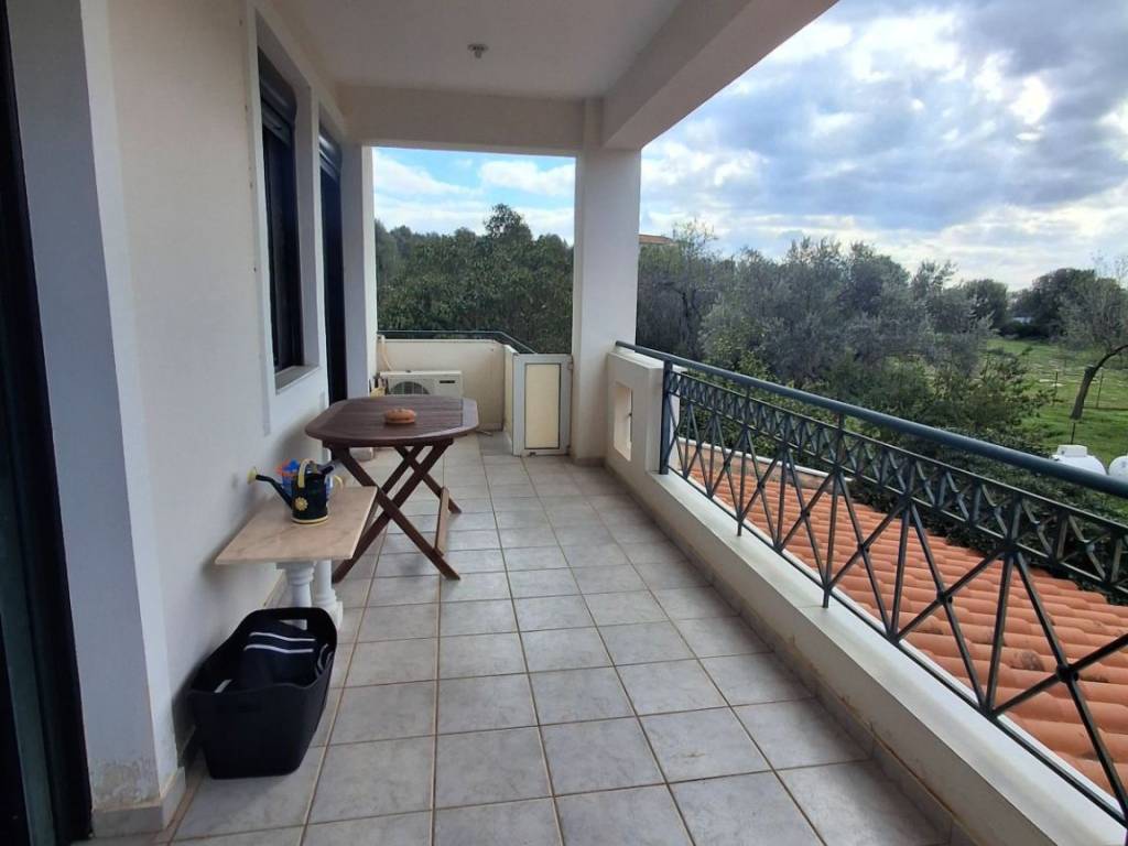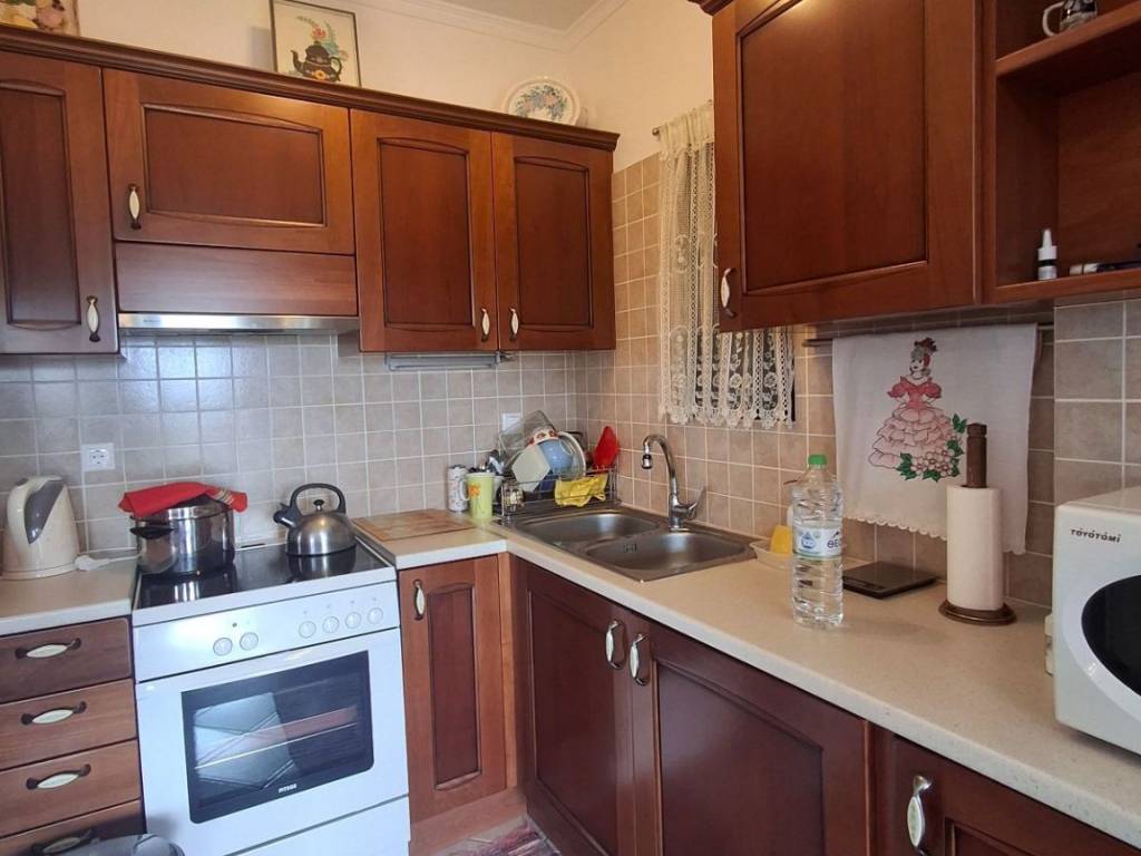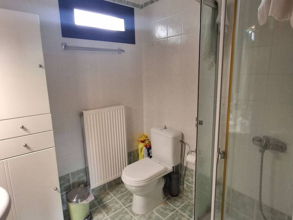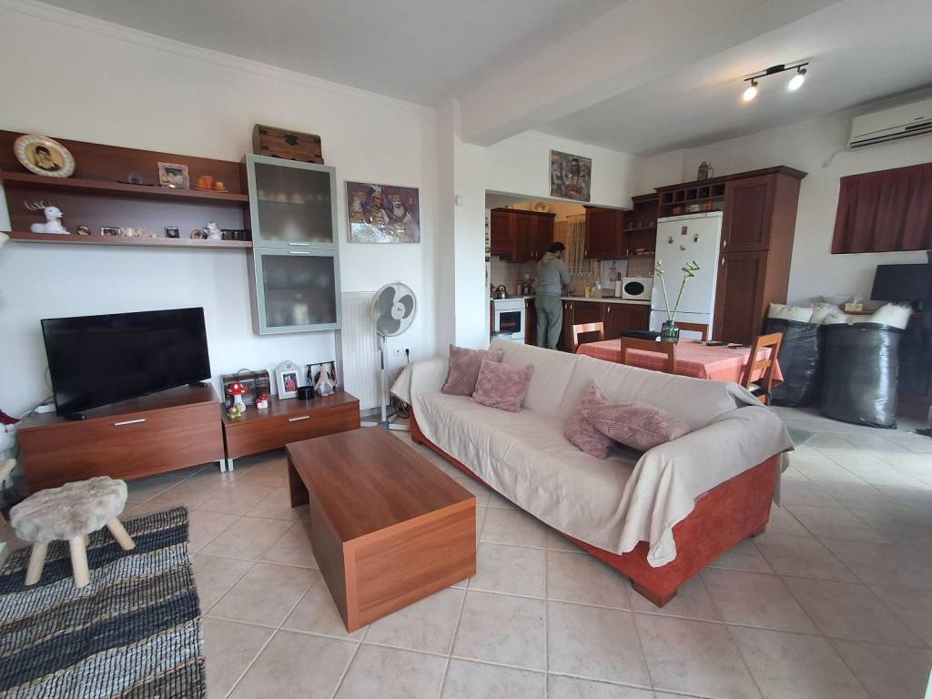 For sale is a comfortable apartment with two bedrooms, with an open-plan kitchen and living room with fireplace! It has gas heating and air conditioning, a large balcony and stairs leading to the garden! It is located in the area of Agioi Asomatoi, about 2 km from the nearest beach and about 6 km from the center of Eretria. Ideal as a holiday home or permanent residence!