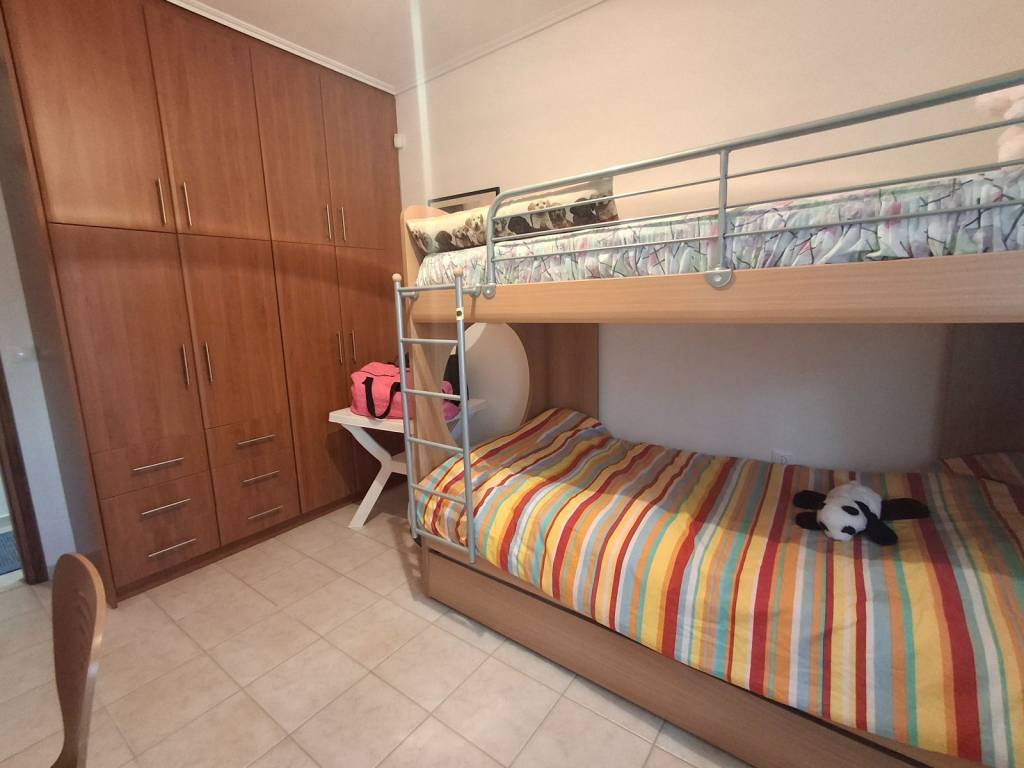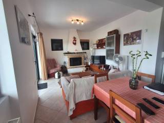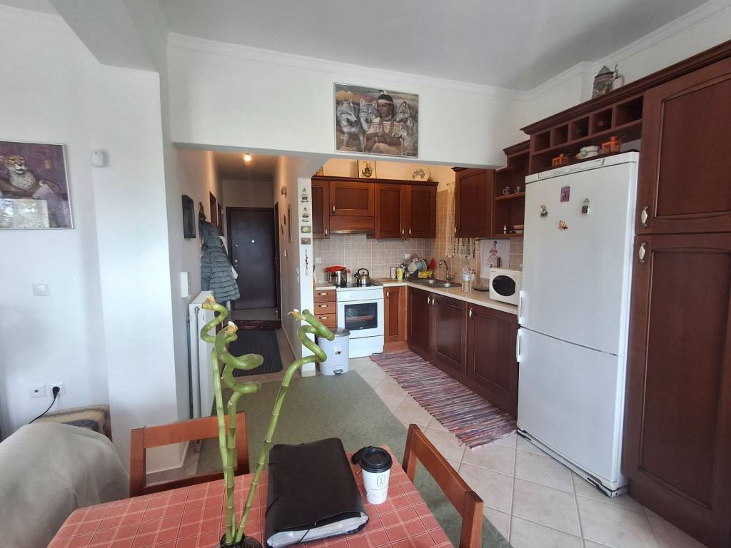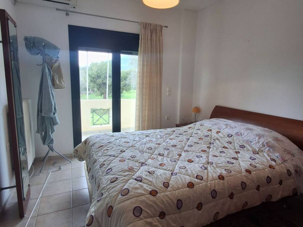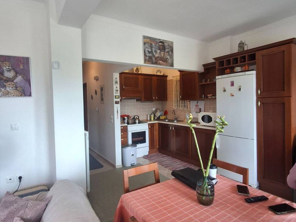 For sale is a comfortable apartment with two bedrooms, with an open-plan kitchen and living room with fireplace! It has gas heating and air conditioning, a large balcony and stairs leading to the garden! It is located in the area of Agioi Asomatoi, about 2 km from the nearest beach and about 6 km from the center of Eretria. Ideal as a holiday home or permanent residence!