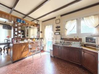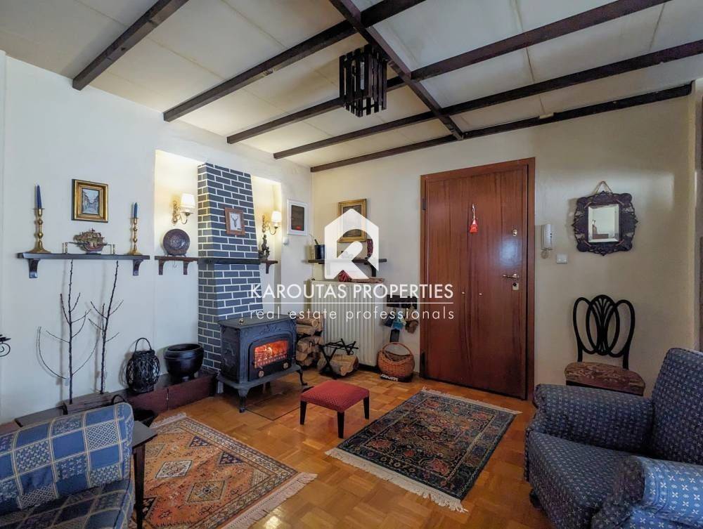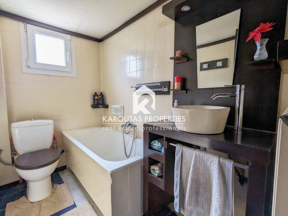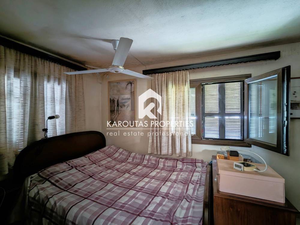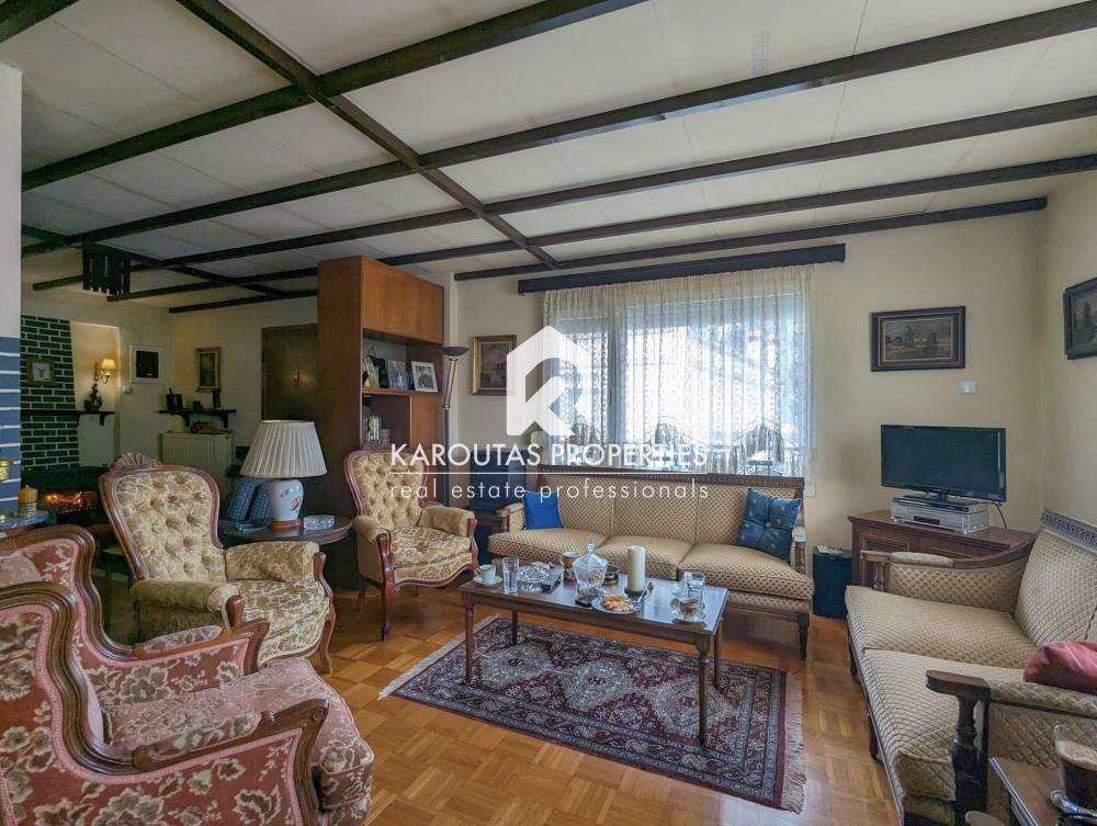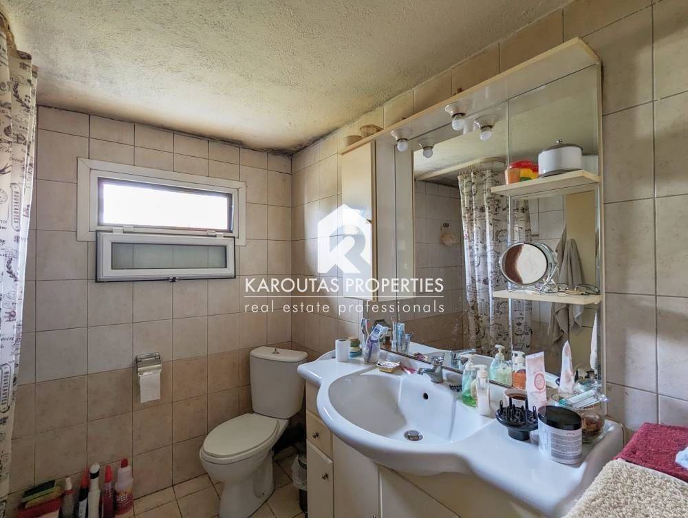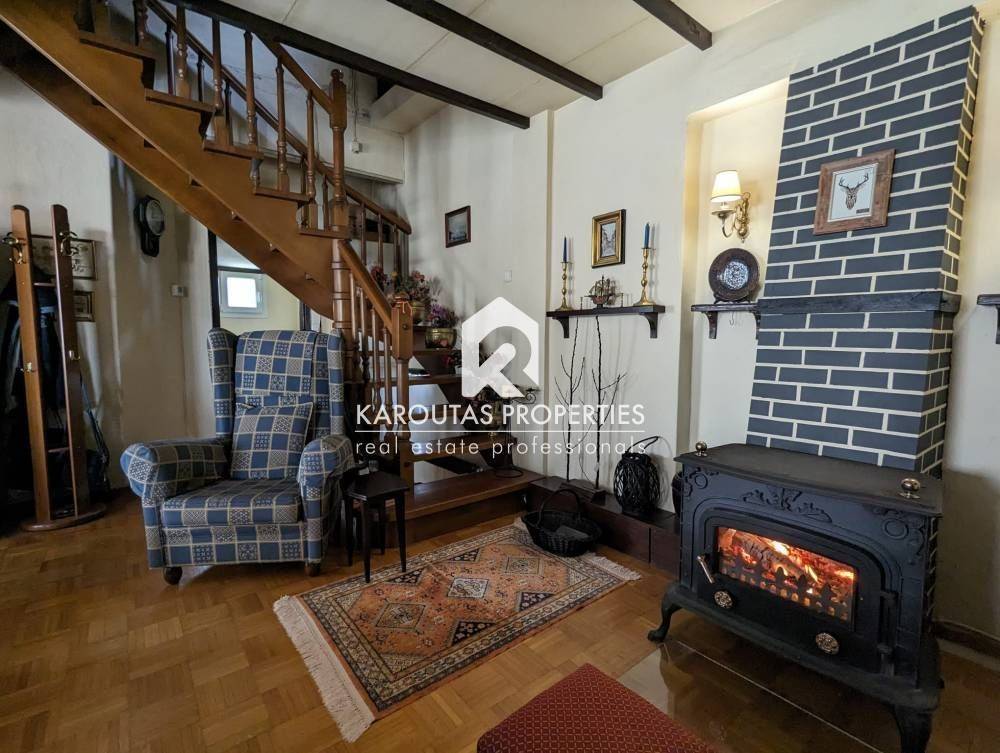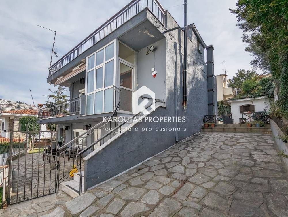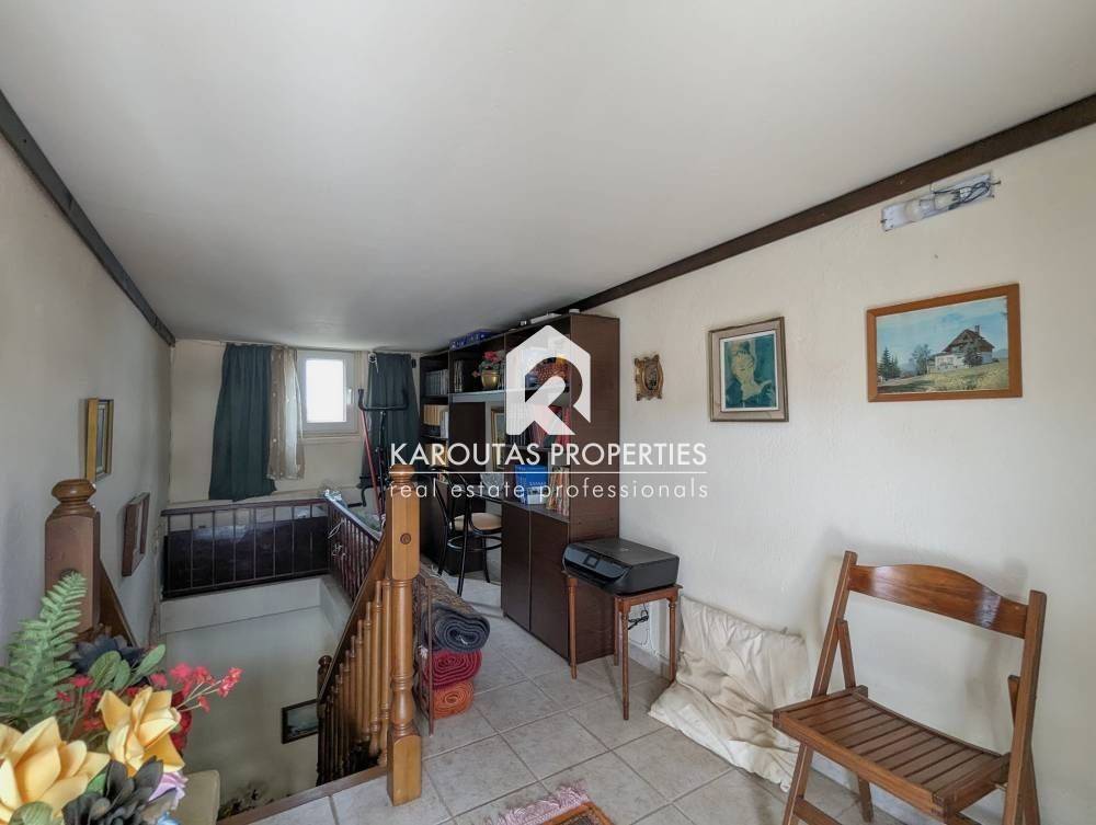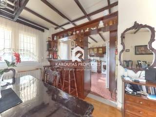 For sale in the Panorama area is a two-story building with attic, built in 1970 and totalling 192 sq.m. in a plot of land of 402 sq.m.. The residence is comprised of a ground floor with two rooms an independent lounge room, a bathroom, and a storage room that also doubles as boiler room. Two staircases (one external, one internal) lead to the first floor where the main living room is located. It is a high ceiling, spacious, and very bright. Also, a dining room, kitchen and a bathroom are located on the first floor. These spaces feature balcony doors that lead to a corner veranda with views to the village and the mountain. The staircases are also leading to the garden and the main entrance of the residence. The living room on the first floor leads through a wooden staircase to an attic and a large veranda. The building features an a wood burner, and additionally an external storage outbuilding 6 sq.m.. It is entirely surrounded by a courtyard with garden This detached home was finished on the highest standards of the Market which can be seen through the available photos accompanying the listing.