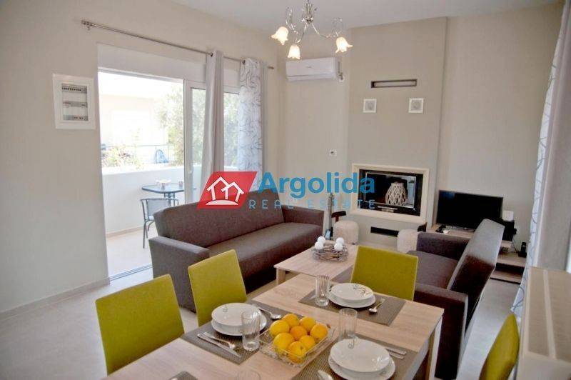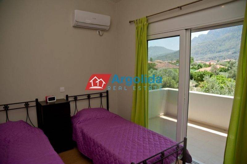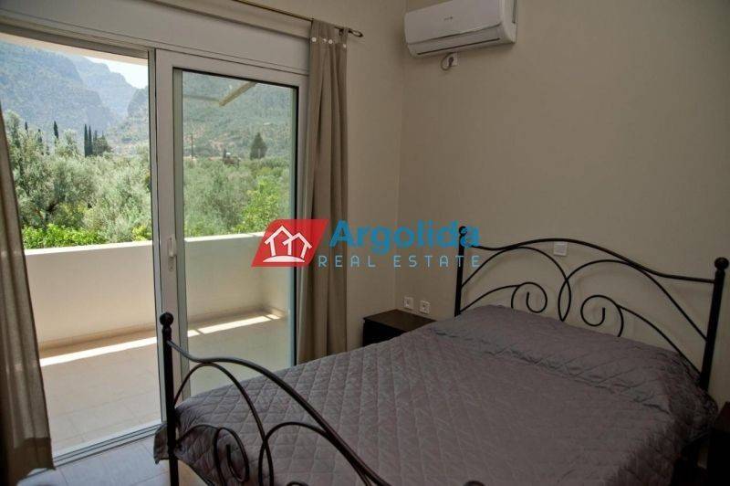 A beautiful detached house of 122 sq.m. is offered for sale in Diakopto, enjoying lovely open views of the lush green mountains of the area and offering an excellent opportunity for a permanent residence, holiday home, or investment property. The main residence, with a total area of 80 sq.m., is arranged over two levels and features an entrance on the elevated ground floor with a bright living room with an energy-efficient fireplace, a modern kitchen with dining area, and direct access to large sunny verandas, as well as a WC with laundry space. On the upper floor there are two spacious bedrooms with built-in wardrobes, access to a large veranda with beautiful views, and the main bathroom. The 42 sq.m. semi-basement includes an independent guest studio with a separate entrance, ideal for hosting visitors or for generating additional income through short-term rental platforms such as Airbnb. The house has been constructed with high-quality specifications and features thermal break aluminum window frames, insect screens, a reinforced security door, solar water heater, high energy efficiency, and the option to install photovoltaic panels for greater energy autonomy. The price of €185,000 includes full furniture and equipment, such as all electrical appliances including refrigerator, washing machine, dishwasher, electric stove, and microwave oven, an energy-efficient fireplace with water boiler providing heating throughout the house, A++ air conditioning units in all rooms, televisions in every room, and complete furnishing with beds, sofas, dining table, curtains, and household equipment. The property is located in a quiet neighborhood, within a short distance from the local market and the suburban railway station, and only a few minutes from the beach, making it a very attractive option for comfortable living or as a ready-to-use investment property with immediate rental potential.