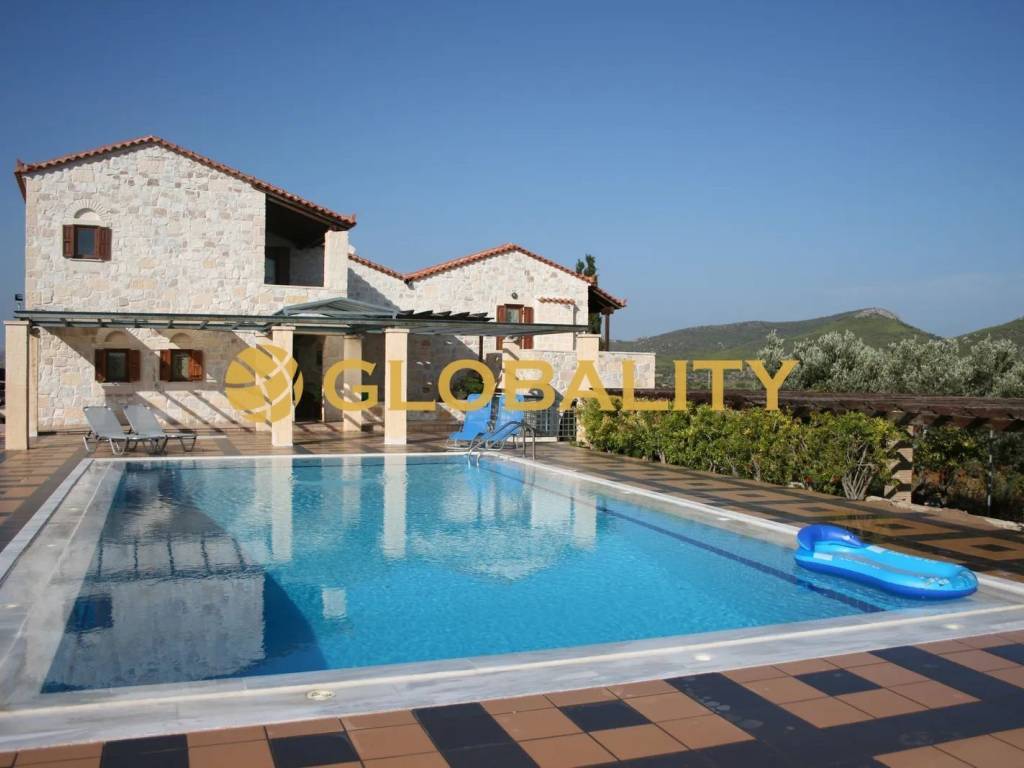 Villa For rent in Anavissos. The Villa is 600 sq.m. and it is located on a plot of 2.000 sq.m.. It consists of: 4 bedrooms (4 Master), 5 bathrooms, while it has the following parkings: 10 Open. The property was built in 2010 and it was renovated in 2020. Its heating is Personal with Oil, Air conditioning are also available, it has Alluminum frames with Double glazed windows, the energy certificate is: A and its floors are Tiles, Marble. The property's status is: Renovated, Excellent condition, it is close to Sea, Seaside, it has Sea, Mountain, Nature, Openness view. The Villa is With Facade, Bright, Airy, Luxury, Stone house and it also has the following unique features and advantages: Window Screens, Tents, Electric Appliances, Storage, Internal staircase, Swimming pool, Garden, Security door, CCTV, Security alarm, Playroom, Rented, Night stream, Automatic watering, Grass, Trees, Quiet neighborhood, Service/Maid’s room, Office room.Excellent villa in a verdant estate on the top of a hill with a spectacular view of Sounio - Anavyssos - Saronida as well as the deep blue Aegean and Saronic Gulfs. From the villa you admire the fantastic sunrise as well as the wonderful sunset. In this beautiful environment you enjoy complete private security and absolute peace. The estate is overgrown with olive - almond - fig - lemon and orange trees. The stone-built villa (externally and internally) in addition to the traditional architecture has a huge space for parking vehicles, gazebos, a traditional wood-fired oven, a barbecue as well as the wonderful swimming pool. Finally, it has a separate maid's room with kitchen and bathroom. Price: €5.000. GLOBALITY REAL ESTATE, contact phone: 2106149591, email: info@globality.gr, website: www.globality.gr