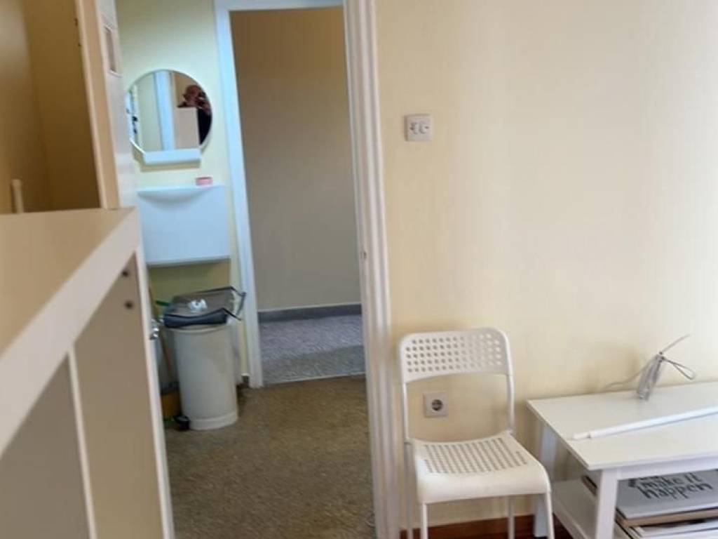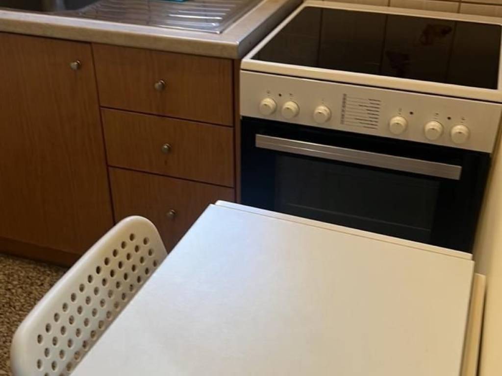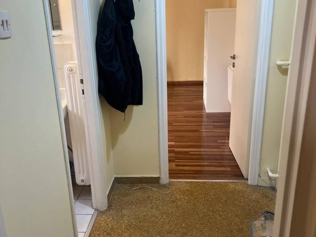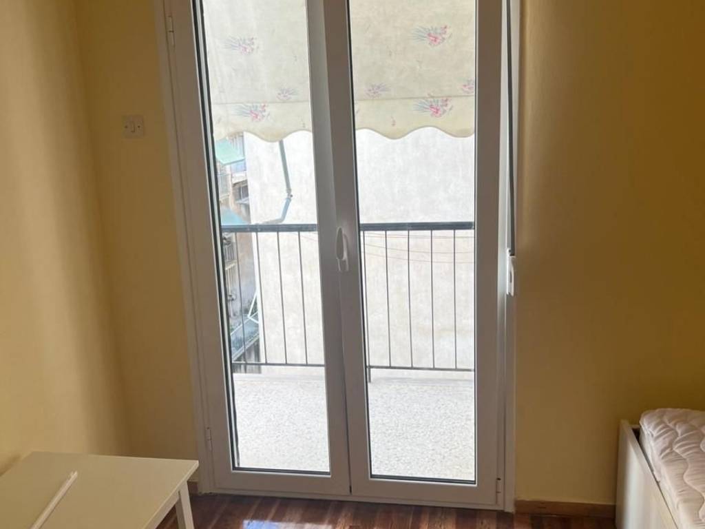 Γκαρσονιέρα, 27 τμ, 3ου ορόφου, επιπλωμένο (κρεβάτι, έπιπλο τηλεόρασης-βιβλιοθήκη, πτυσσόμενο γραφείο, τραπέζι σαλονιού, τραπέζι-καρέκλες κουζίνας, παπουτσοθήκη, εντοιχισμένη ντουλάπα), με ηλεκτρικές συσκευές (πλυντήριο, ψυγείο, κουζίνα), καινούργια παράθυρα αλουμίνιου, κλιματιστικό, θερμοσίφωνας, πόρτα ασφαλείας, τέντα, πλησίον στάσης λεωφορείου, κεντρική θέρμανση φυσικού αερίου, ιδανικό για φοιτητές.