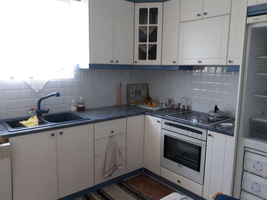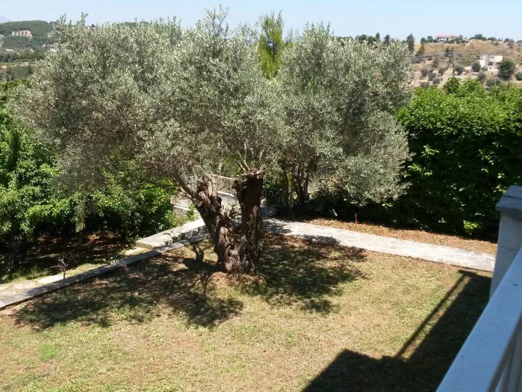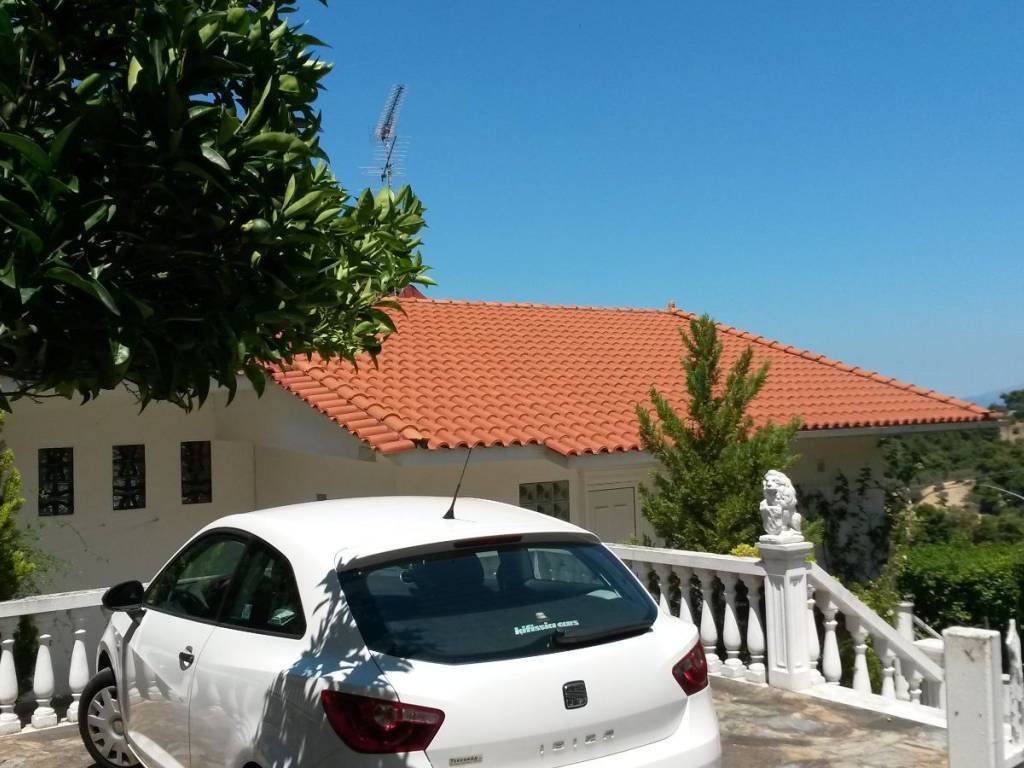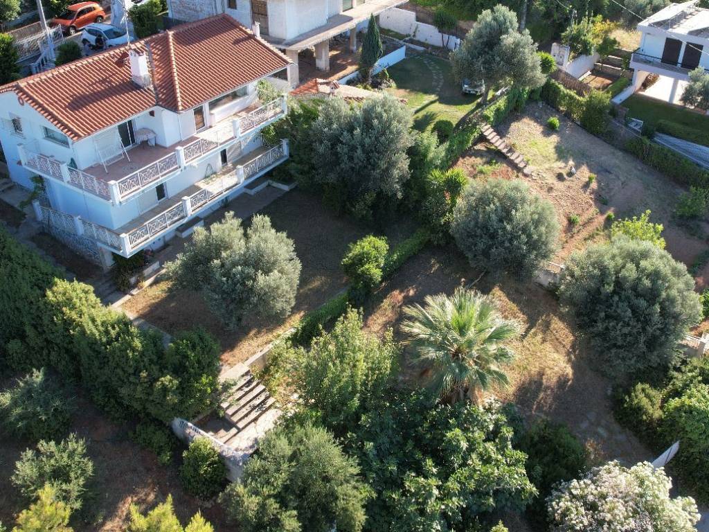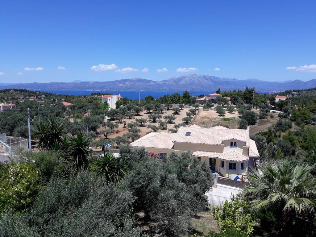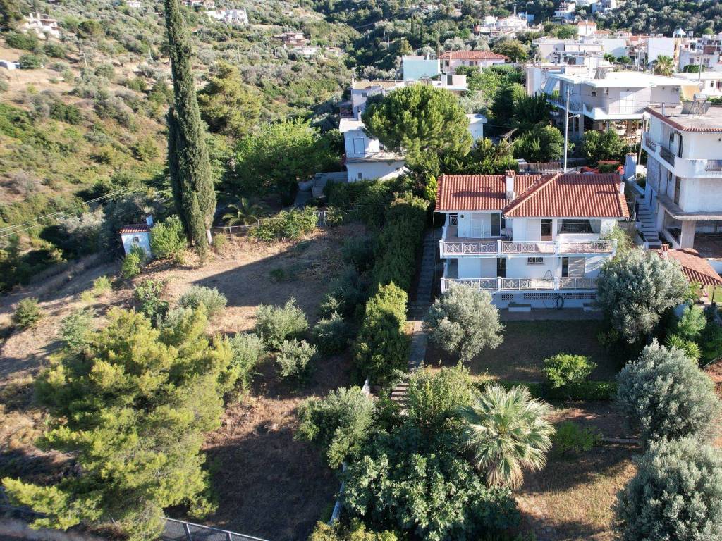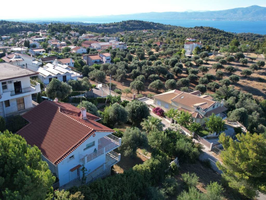 In the beautiful area of Markopoulo Oropos in Attica, Greece. A 2-level detached family home, 160sq.m. plus 88sq.m. basement level with garden, on an 800 sq.m. land plot within city plan and with 2 separate entrances. Built-surface ratio 0.8. WITH COMPLETED ELECTRONIC PROPERTY IDENTITY. Comprised of 3 bedrooms, 1 bathroom, 1 WC, spacious living-dining room, wide verandas, fully equipped kitchen with built-in electric appliances, Washing Machine. Autonomous heating system (oil). Spectacular, uninterrupted 270ο view of sea (including Evia Island), olive groves, hills, forest. All rooms with a view. Living room with wide glass window providing uninterrupted view of sea and more. Garden includes olive trees, fruit trees (figs, pears, oranges, lemons, loquat, etc), & separate water tank. Only 40 km from North Suburbs of Athens, 5km from beaches and ferryboat to Evia Island (Eretria), walking distance from village center. For year-round living or seasonal home.