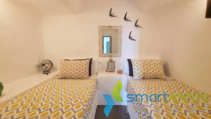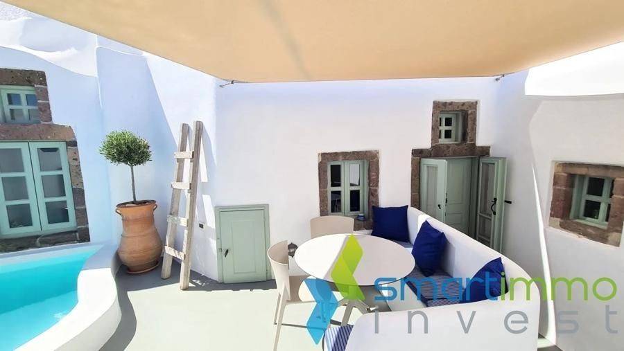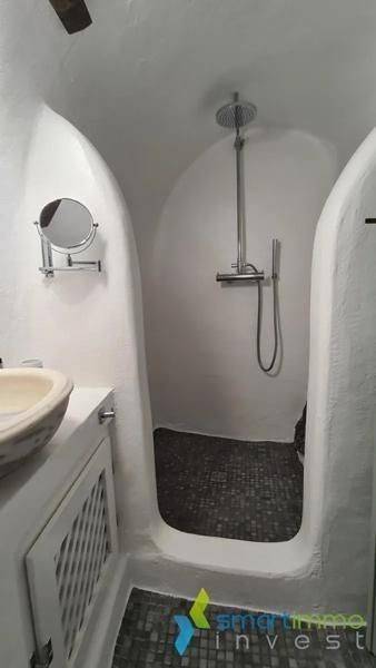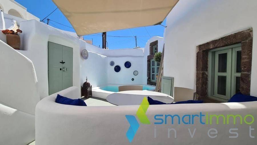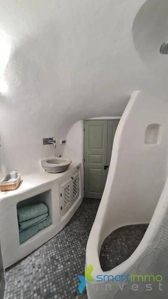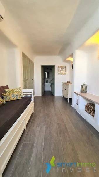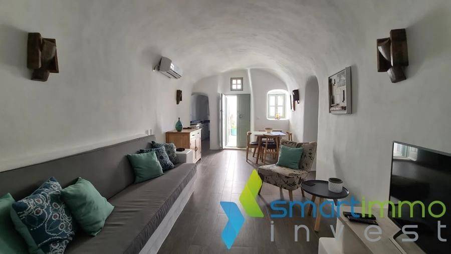 Located in the traditional and highly charming village of Megalochori on Santorini, one of the island’s most authentic and atmospheric settlements, this detached house of outstanding architecture and refined interior design is offered for sale. Megalochori is renowned for its picturesque central square, quality restaurants, and narrow alleys that reflect the true Cycladic character. The property extends over 95 sq.m. and features a well-designed and functional layout. It comprises two comfortable bedrooms, two elegant bathrooms, a fully arranged kitchen, and two separate living areas, offering flexibility for both private use and guest accommodation. The interior design highlights quality materials and meticulous attention to detail. Externally, the residence benefits from a private courtyard ensuring privacy and relaxation, as well as a veranda with pleasant views, ideal for enjoying Santorini’s unique light and sunset ambiance. This property represents an excellent opportunity either as a high-standard holiday home or as an investment for touristic exploitation in a location of consistently strong demand.