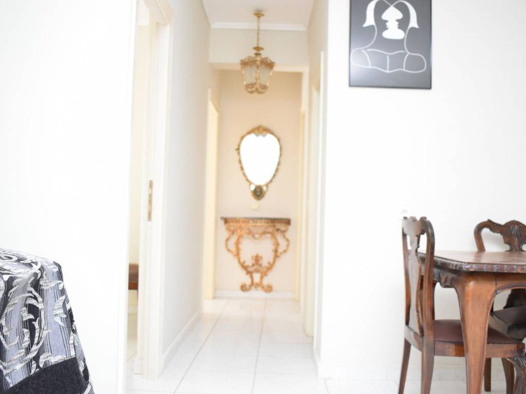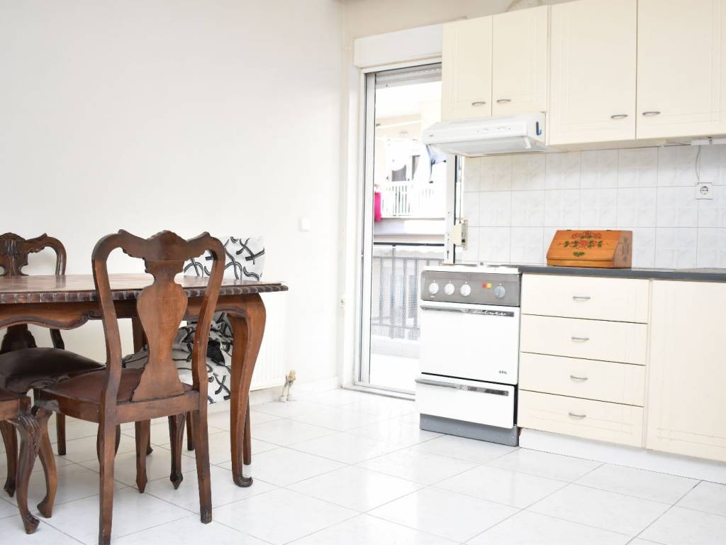 Τριάρι φωτεινό διαμέρισμα 85 τ.μ. δευτέρου ορόφου, διαμπερές, μεγάλη σαλο-κουζίνα, με μεγάλα μπαλκόνια εμπρός και πίσω. Επιπλωμένο με σαλόνι, τραπεζαρία με έξι καρέκλες, μικρο-έπιπλα, κρεβατοκάμαρα, φωτιστικά παντού, εντοιχισμένες ντουλάπες σε δύο χώρους και δυνατότητα τοποθέτησης κρεβατιών στα άλλα δύο δωμάτια. Όλοι οι χώροι έχουν συρόμενα κουφώματα με διπλό κρύσταλλο.Διαθέτει πλυντήριο, ηλ. κουζίνα και χώρους αποθήκευσης στο μπαλκόνι.Έχει αυτόνομη τηλεθέρμανση, ενώ η πολυκατοικία έχει οικογένειες. Είναι ανακαινισμένο και βαμμένο. Διαθέτει ιδιωτικό χώρο στάθμευσης στην πυλωτή με επιπλέον χρέωση.