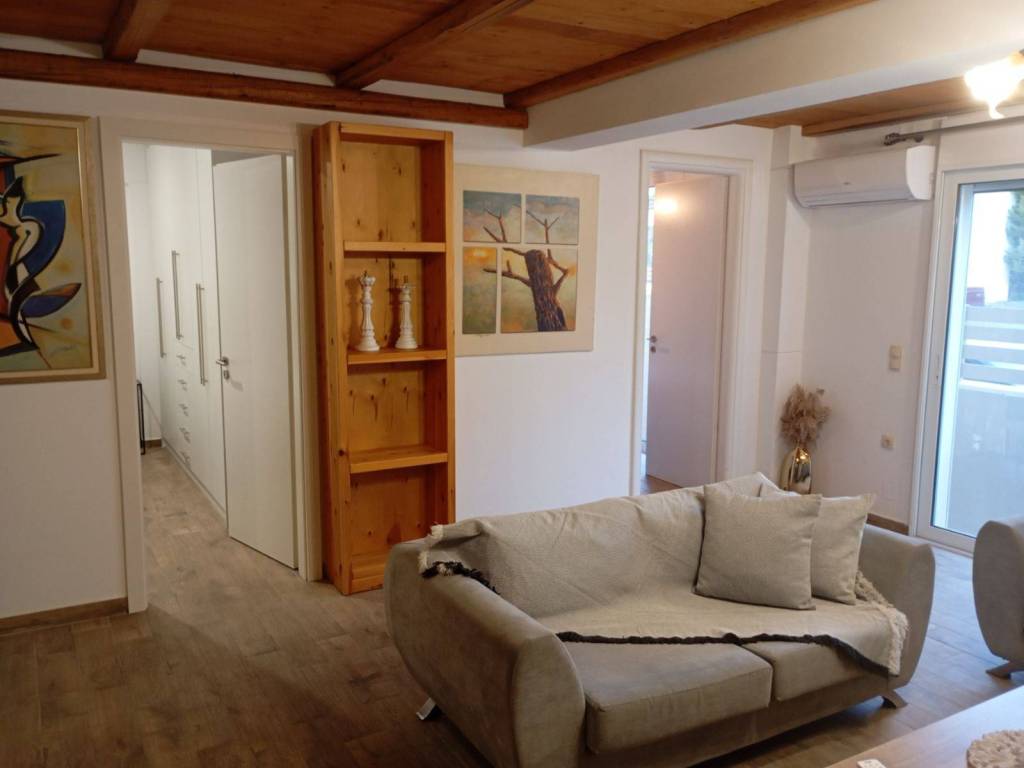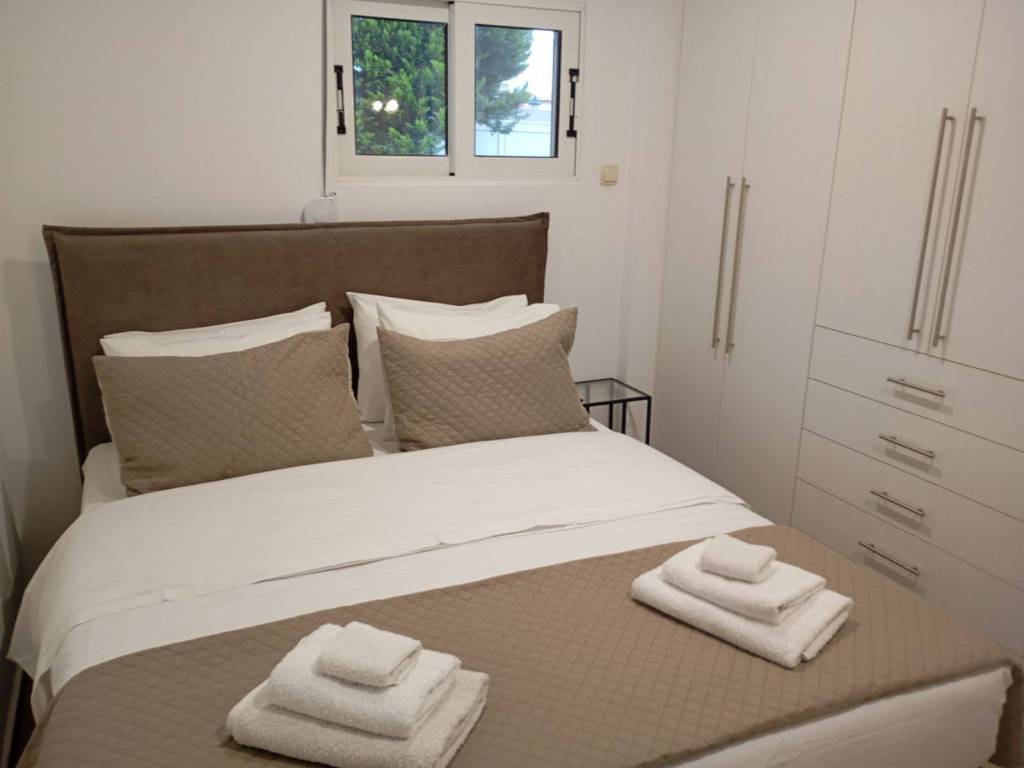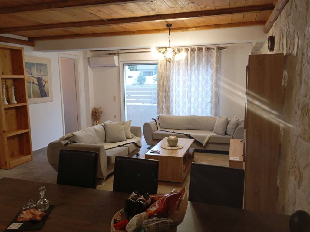(MESAMPELIES) Luxurious, newly built, fully furnished and electrically equipped, ground floor apartment of 80 sq.m, in a quiet neighborhood. It offers a large open-plan living room-kitchen area, two bedrooms, bathroom with cabin. It has a/c, security door, fire detection system, TV, washing machine, small appliances and kitchen utensils, aluminum frames with screens, internet connection. The price includes all bills. Available for short and long-term rental. Energy class A.