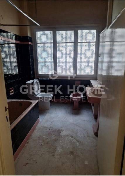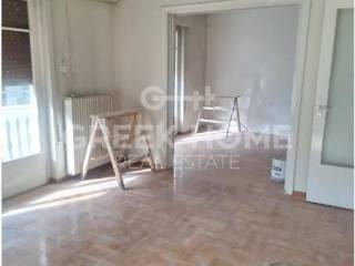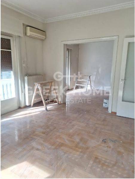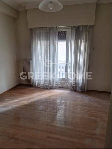 Kypseli - Apartment 98sqm bedrooms 2, 1st, needs renovation, energy class D, living room, hall, kitchen, heating type: central (oil), quiet, dual aspect apartment, luminous, corner, frontage, balconies, elevator, wooden frames, wood & mosaic floors, separate kitchen, east-western orientation, close to bus stop (up to 100m), close to school (up to 100m), close to super market (up to 100m), close to sports facilities (up to 100m), close to square (up to 200m).