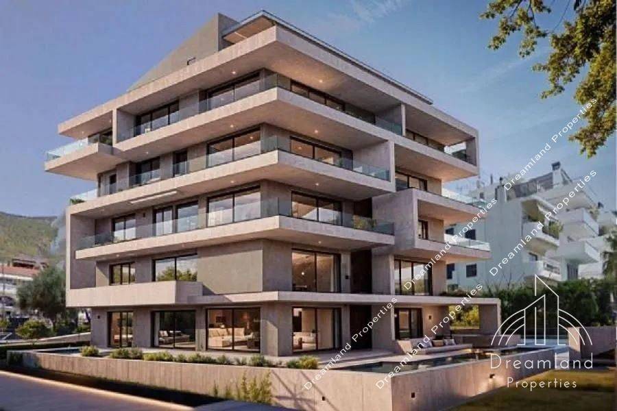 GLYFADA South, Newly- Built Luxurious Maisonette 168 sq.m., Ground Floor - 1st Floor, 4 Bedrooms (1 Master), Open Plan Large Living Room - Kitchen, 3 Bathrooms, W.C., Autonomous Underfloor Heating with Heating Pump, Air Conditioning, Private Garden and Swimming Pool, Internal Staircase, Security Door, 1 Underground Parking Spot, Storage Unit, Aluminum Frames, Double Glazed Windows, Wooden Floors, Phtovoltaic Panels, Luxurious Construction, Minimal Aesthetics, Under Construction, Price 1.100.000 Euros (Listing code: 4315).