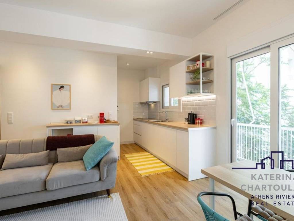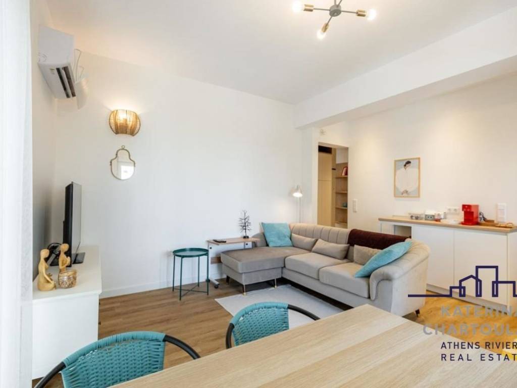 Apartment For rent, floor: 2nd, in Palaio Faliro - Panagitsa. The Apartment is 75 sq.m.. It consists of: 2 bedrooms (1 Master), 2 bathrooms, 1 kitchens, 1 living rooms and it was renovated in 2026. Its heating is Personal, Air conditioning, Solar water system are also available, it has Alluminum frames with Double glazed windows, the energy certificate is: C and its floors are Wooden. The property's status is: Renovated, Very good condition, it is close to Tram, Transportation, Sea, Seaside, it has Sea view. The Apartment is Furnished, On Corner, Bright, Airy, Sunny and it also has the following unique features and advantages: Window Screens, Elevator, Electric Appliances, Security door. Price: €1.350. Katerina Chartoulari Real Estate, contact phone: 2108976105, email: info@chartoulari.gr, website: www.chartoulari.gr