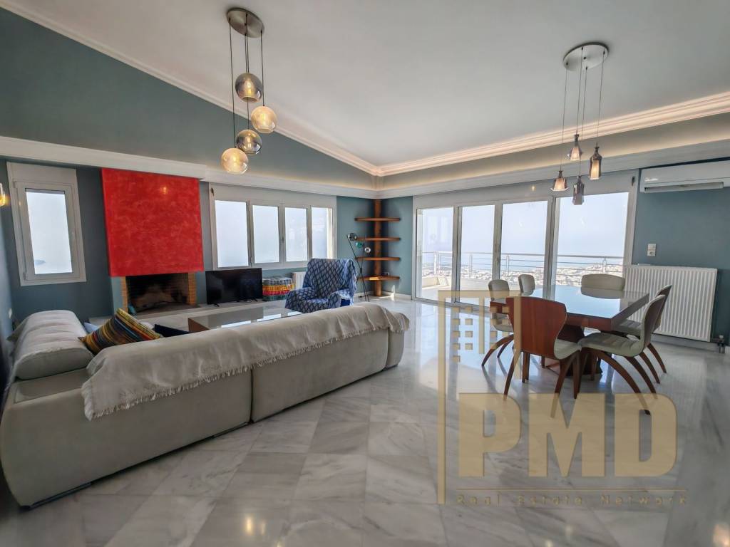 A bright and fully furnished 140 sq.m. maisonette in Panorama Voula, one of the most desirable and quiet residential areas of the Athens Riviera. The property is located on the 2nd and 3rd floo and offers stunning, unobstructed views of both the sea and the mountains, combining comfort, privacy and quality living. The 2nd floor consists of a large open-plan living and dining area with a fireplace, a separate fully equipped kitchen with electrical appliances, two bedrooms, one bathroom and one guest WC. The 3rd floor includes one bedroom and one bathroom, offering additional privacy and flexibility for guests or a home office. The property is offered fully furnished and includes autonomous oil heating, air conditioning, aluminum window frames with double glazing, a security alarm system, loft storage space and a small internal storage room. One private parking space is also available.