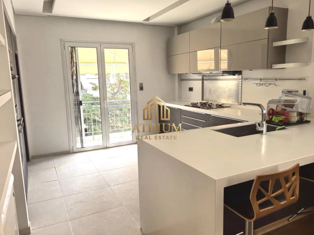 Bright 2nd-floor penthouse apartment in a three-storey residential building, featuring wraparound balconies and a side sea view, located in a quiet area near a square. The apartment offers 2 comfortable bedrooms with large wardrobes, 1 bathroom with a bathtub, and an open-plan living–dining–kitchen area. The kitchen is high quality, featuring a Corian countertop, ample cabinetry, and built-in appliances (Smeg & Whirlpool). Additional features: • 2 air-conditioning units (cooling & heating) • Aluminum window frames • Solar water heater • Heating with electric storage heaters • Wooden floors & tiles in the kitchen • Storage space, loft storage, and hallway closet No elevator. For more information: ATRIUM Real Estate.
