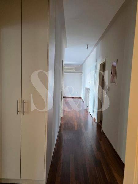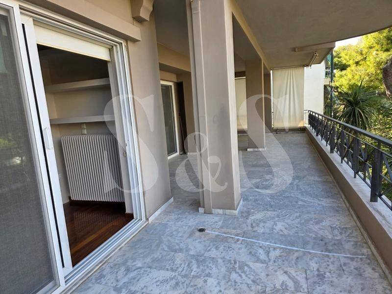 Glyfada, Kato Glyfada - Apartment 105sqm plot 700sqm, bedrooms 2, levels 1, 1st, excellent condition, year built 1995, renovation year 2020, energy class C, living room, hall, kitchen, bathroom, wc, heating type: autonomous, heating medium oil, air condition, luminous, corner, frontage, solar heater, fireplace, balconies, large balconies, elevator, garden, double glazed windows, door screen, floor type wood, handicap ramp, alarm, video doorbell, luxurious, within city plan, residential zone, western orientation, access from asphalt.