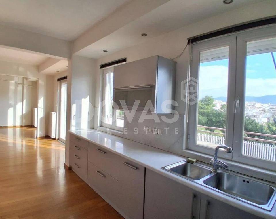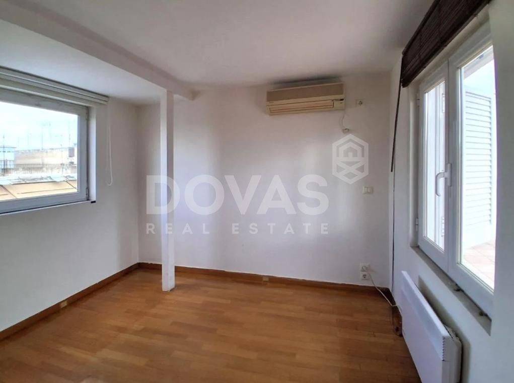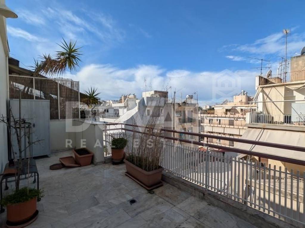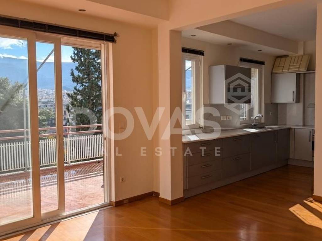 Pangrati, Alsos Pagkratiou - Apartment 84sqm electrical appliances furnished, bedroom, levels 2, 6th (67sqm) - 7th (17sqm), penthouse, fully renovated, year built 1975, renovation year 2025, energy class D, living room, kitchen, 2 bathrooms, heating type: central (oil), air condition, quiet, dual aspect apartment, luminous, acropolis view, frontage, painted, solar heater, balconies, large balconies, tents, elevator, built in appliances, thermal shut-off frames, double glazed windows, door screen, wood floors, secure door, luxurious, pets allowed, residential zone, east-southern orientation, access from asphalt, special offer, close to metro/train (up to 1000m), close to park (up to 200m), close to entertainment (up to 200m), close to market (up to 200m).