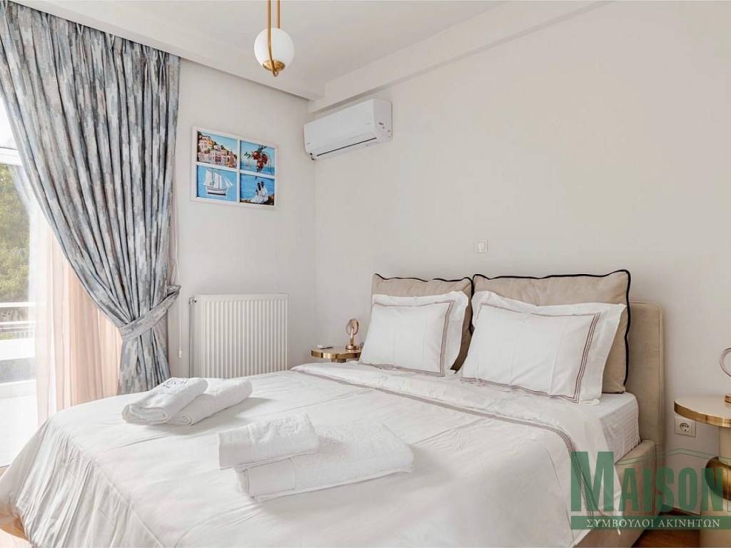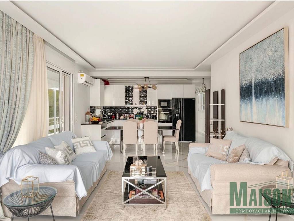 A fully renovated 85 sq.m. penthouse apartment is offered for sale in a prime location of Vari–Varkiza. The property is located on the 4th floor, is front-facing, bright, airy and sunlit, enjoying open sea and mountain views with a southeast orientation. Originally built in 1985, it was completely renovated in 2024 using high-quality materials and holds an Energy Class A certificate. The apartment features an open-plan living room and kitchen, two bedrooms and one bathroom, and is sold fully furnished with branded electrical appliances. It offers autonomous heating via central installation, air conditioning units, aluminum window frames with double glazing, electric insect screens, high-quality awnings, security door, tiled flooring, alarm system, internet infrastructure, TV aerial and elevator access. Pets are allowed and the neighborhood is quiet. Ideally located just 200 meters from the market and 200 meters from the beach, the property is close to public transportation and a commercial center. It represents an excellent choice for both private residence and investment, as it is perfectly suitable for short-term rental, in one of the most sought-after areas of the Athens Riviera. Property ID: 20971, www.maison-estate.gr