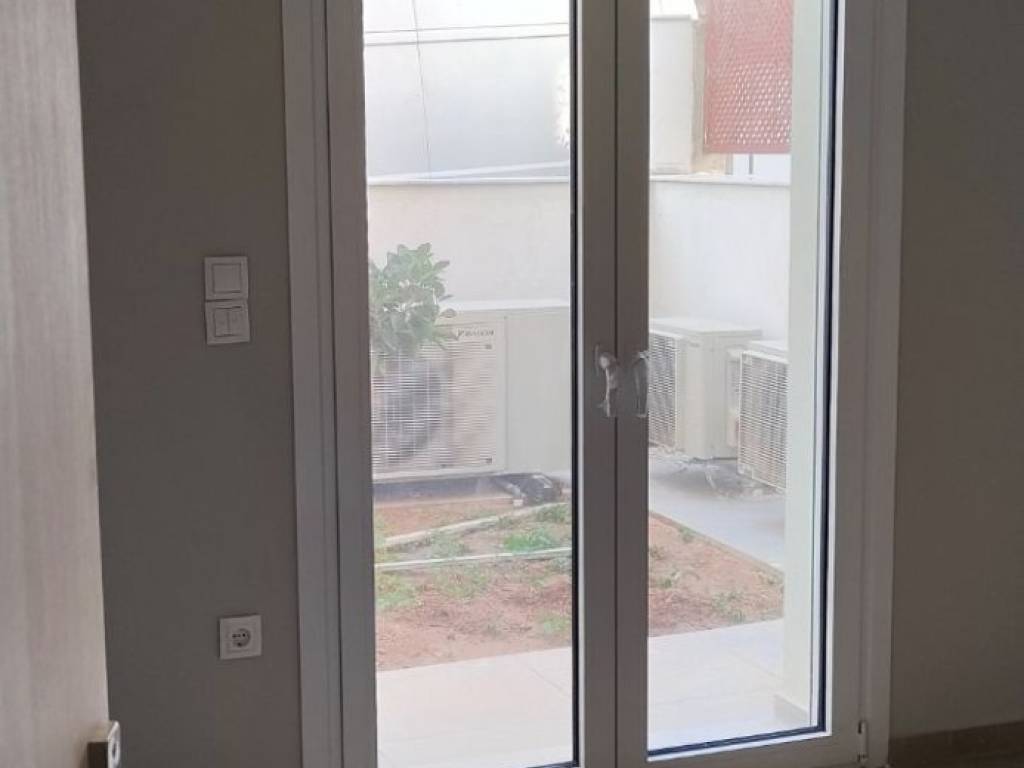Luxury ground-floor apartment of 103 sq.m. available for rent in Gerakas, situated on a 266 sq.m. plot. This is a newly built property (2025), single-level, dual-aspect and front-facing, offering plenty of natural light and unobstructed views. The apartment consists of two comfortable bedrooms, an open-plan kitchen with living and dining area, one main bathroom and an additional WC. It features autonomous underfloor heating with a heat pump, air conditioning and a solar water heater. The property has an Energy Performance Certificate rating of A and includes aluminum window frames with double glazing and insect screens, a security door, alarm system and video intercom. The kitchen is equipped with built-in electrical appliances (extractor hood, electric cooktop and oven). Additional features include a storage room, private garden and one parking space. An ideal choice for those seeking a modern, high-standard residence in a quiet and developing area. Available from April 15, 2026.