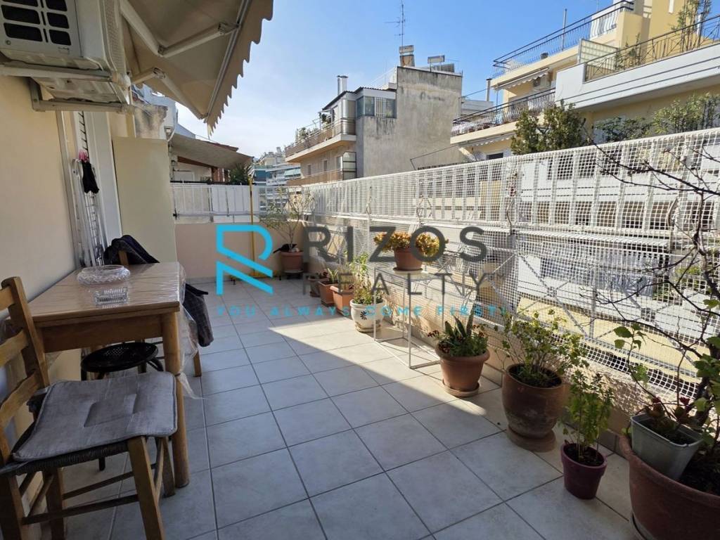 Byronas (Neo Pagrati area) Penthouse apartment available on the 5th floor, with a total area of 80 sq.m. and an additional 80 sq.m. roof garden with views of trees and the urban landscape. It consists of 2 bedrooms, living room with fireplace, open plan kitchen, and 2 bathrooms. It was built in 2010, has energy class A, and has individual heating - natural gas. It also has underground parking, tiled floors, aluminum window frames, security door, video intercom, solar water heater, elevator, disabled access, 5 sqm storage room, garden, fireplace, awnings, screens, double glazing, solar water heater, roof garden, video intercom, open space, fiber optics, and 35 sq.m. balconies. It is located in a quiet neighborhood of Vyronas, near the square, market, restaurants, and public transportation. Price: €280.000 RIZOS REALTY, Tel. Contact: (+30) 210 7222 221, email: info@rizosrealty.com, www.rizosrealty.com