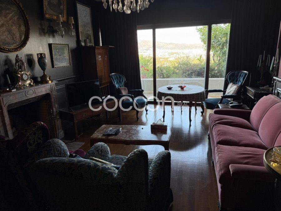 Σε εξαιρετικό οίκημα γνωστού αρχιτέκτονα κατασκευής 2004, dublex διαμέρισμα δεύτερου και τρίτου ορόφου. Το διαμέρισμα διαθέτει πανοραμική ανεμπόδιστη θέα και αναπτύσσεται σε δύο επίπεδα ως εξής. Στον τρίτο όροφο (147 τμ) αναπτύσσεται ο χώρος υποδοχής με τζάκι, ξεχωριστή τραπεζαρία, πολύ ευρύχωρη κουζίνα, wc επισκεπτών και ένα υπνοδωμάτιο με ξεχωριστό μπάνιο. Υπάρχει ένα ακόμη δωμάτιο που μπορεί να λειτουργήσει ως δωμάτιο για το προσωπικό. Το επίπεδο αυτό βγάζει σε μεγάλη βεράντα με καταπληκτική θέα. Σκάλα οδηγεί στον δεύτερο όροφο (99 τ.μ.) όπου υπάρχουν δύο ακόμη υπνοδωμάτια με τα μπάνια τους καθώς και δυνατότητα να δημιουργηθεί ένα ακόμη υπνοδωμάτιο. Στο ίδιο επίπεδο υπάρχει χώρος πλυντηρίου καθώς και αποθηκευτικοί χώροι. Και το επίπεδο αυτό λόγω της κλήσης του οικοπέδου διαθέτει εξαιρετική, ανεμπόδιστη θέα. Το διαμέρισμα είναι επενδεδυμένο με δρύινα δάπεδα .Η θέρμανση είναι ενδοδαπέδια με αντλία θερμότητας. Διαθέτει επίσης κεντρικό κλιματισμό με κανάλια.Τα κουφώματα είναι με διπλά τζάμια και ηλεκτρικά ρόλο. Η κατοικία συνοδεύεται με δύο υπόγειες θέσεις στάθμευσης και μία αποθήκη. Στο διαμέρισμα υπάρχει δυνατότητα χρήσης εσωτερικής πισίνας και πλήρως εξοπλισμένου γυμναστηρίου.