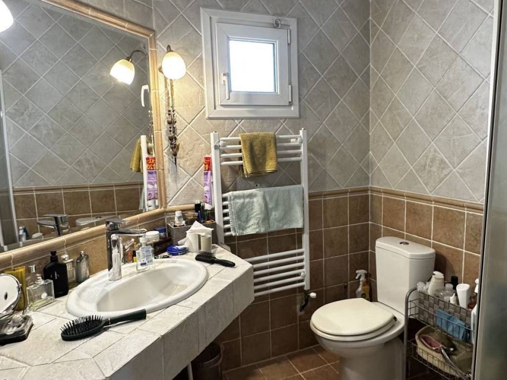 Detached house for sale, 280 sq.m., three levels, built in 2000, on a 400 sq.m. plot, with 25 meters frontage and very direct access to a main road. The residence features three comfortable bedrooms, two spacious living rooms, and two bathrooms, offering a functional layout and generous living spaces suitable for family living. Heating is provided by a heat pump system, with an additional oil heating system available as backup. The property is also equipped with air conditioning and a solar water heater. The outdoor area includes a private parking space, while the house has an independent entrance that ensures privacy. A storage room of 20 sq.m. is also included, providing additional storage space. This is a highly functional property with easy access to major road networks, making it ideal both for permanent residence and for investment purposes.