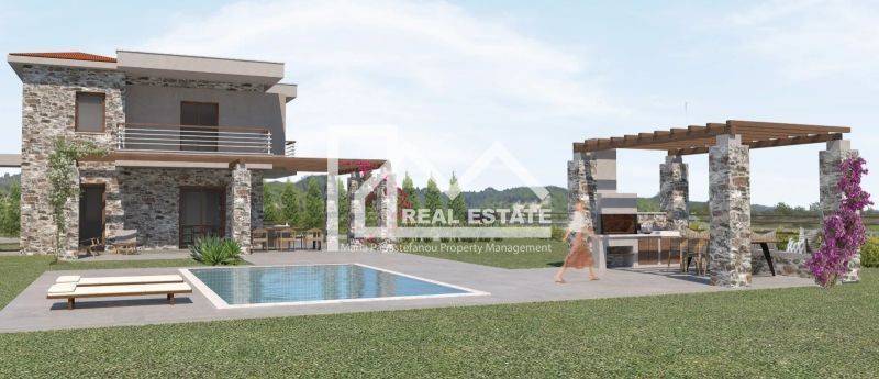Property Code: 1-1768 - Villa FOR SALE in Kassandra Fourka for € 450.000 . This 150.00 sq. m. Villa is on the Ground floor and features 4 Bedrooms, an open-plan kitchen/living room, 2 bathrooms and a WC. The property also boasts Heating system: Fan coil, tiled floor, unobstructed view, Window frames: Synthetic, Security door, accessibility for people with disabilities, parking, garden, swimming pool, A/C, alarm system, electrical appliances, insect screens, double-glazed windows, BBQ, open space, internal staircase. The building was constructed in 2024 Plot area: 1000 s.q. . Building Energy Rating: A+ Distance from sea 400 meters,