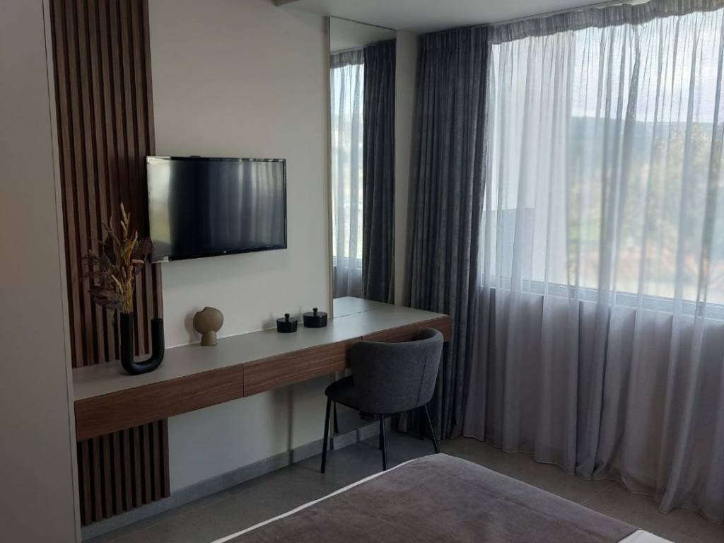 For rent a luxurious newly built 3-room apartment, fully furnished, televisions, parking, security cameras, its own clock, thermal insulation, bathroom with shower, bright. Electronically equipped, autonomous solar water heater, air conditioners in every room, armored security door, electronic aluminum shutters, screens, built-in wardrobes, fully equipped kitchen (dishes, glasses, pots, coffee maker, etc.) Anatomical mattresses, washing machine, open-plan living room-kitchen area, balcony Short-term rental