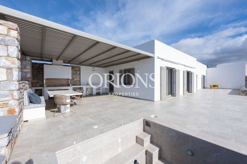 The outside area, with a very big garden with a jacuzzi-mini pool and a BBQ, is both a personal haven and a gathering-place for friends and family to have a fun weekly cookout using delectable local products. Enjoy a delicious meal at the marble table as you gaze out over the Aegean. The house features German insulation and a VRV air conditioning system, an energy-saving modern design.