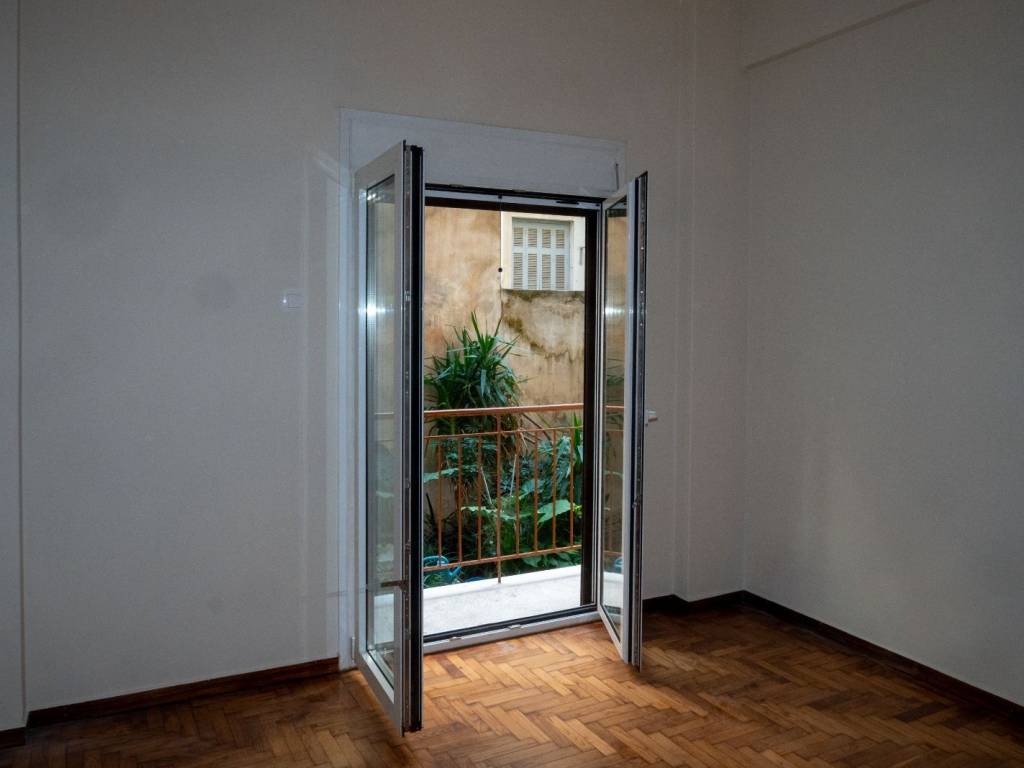 Rear-facing apartment. Originally built in 1960, renovated in 2026. Plumbing, drainage, and electrical installations have been completely replaced. Hardwood floors in the bedroom and living room, freshly polished. New energy-efficient windows and frames. 6-minute walk from Agios Nikolaos ISAP metro station. Quiet neighborhood, ideal for students, single occupancy, or a couple. NO AGENTS / NO REALTORS