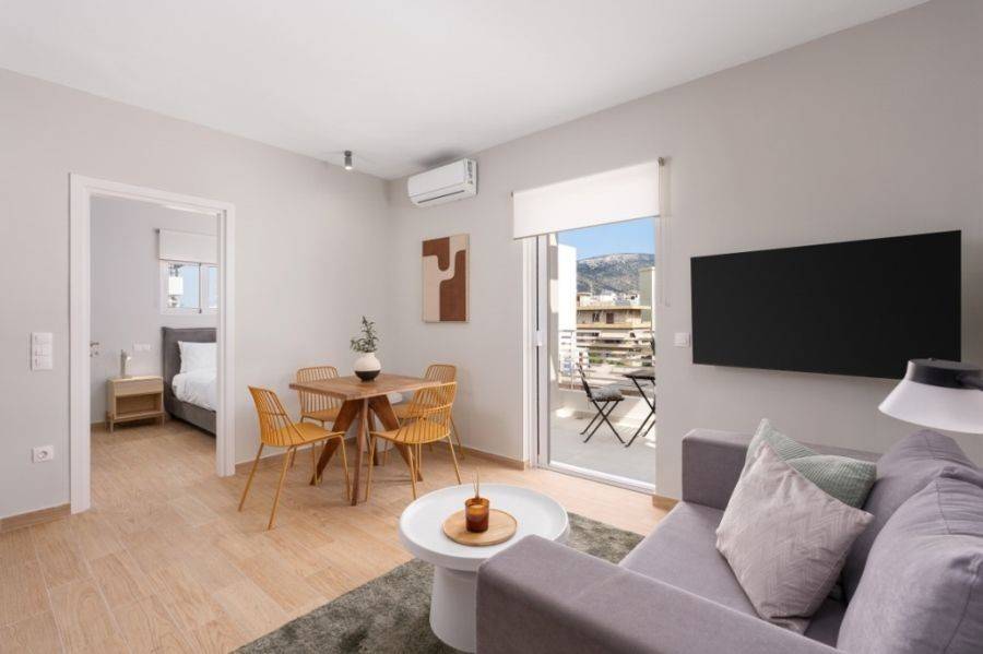 Glyfada, Ano Glyfada, Apartment For Rent, 48 sq.m., Property Status: Amazing, Floor: 4th, 1 Level(s), 1 Bedrooms 1 Kitchen(s), 1 Bathroom(s), Heating: Electricity, View: Mountain View, Building Year: 2022, Energy Certificate: D, Floor type: Marble + Tiles, Type of doors: Aluminum, Features: Elevator, Security door, CCTV, Cable TV, Internet Line, Electric Appliances, Double Glazed Windows, Window Screens, Balcony Cover, Balconies, Furnished, Luxury, Penthouse, Airy, Bright, AirConditioning, New Construction, Painted, Price: 1.150€. Yestayhomes, Tel: 6986749007