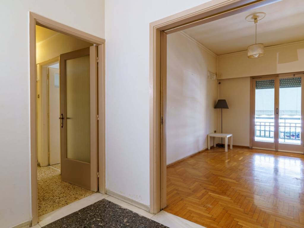 Very bright and spacious apartment in a well-maintained apartment building with video door entry. It has new kitchen furniture. Next to the market and a supermarket. Between Thiseos and Syggrou Avenue. Very close to Niarchos Park and bus stops to Athens and Piraeus.