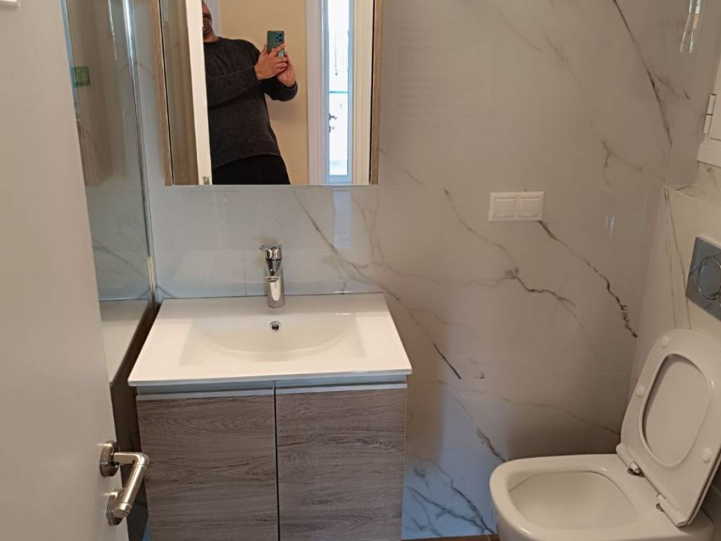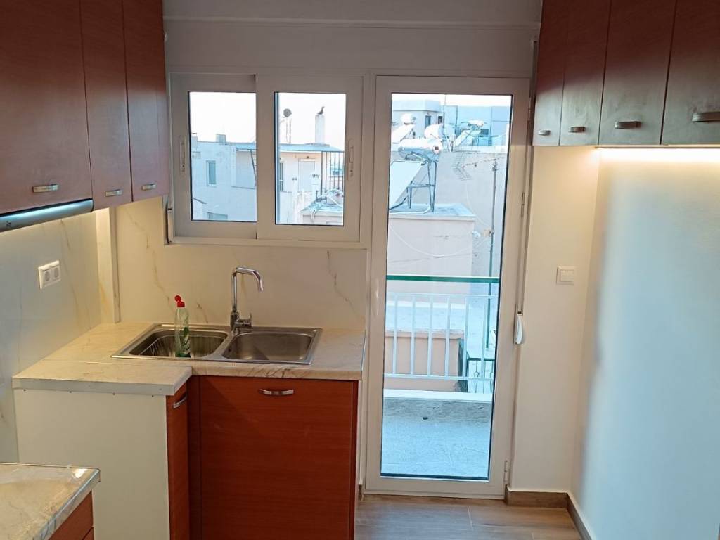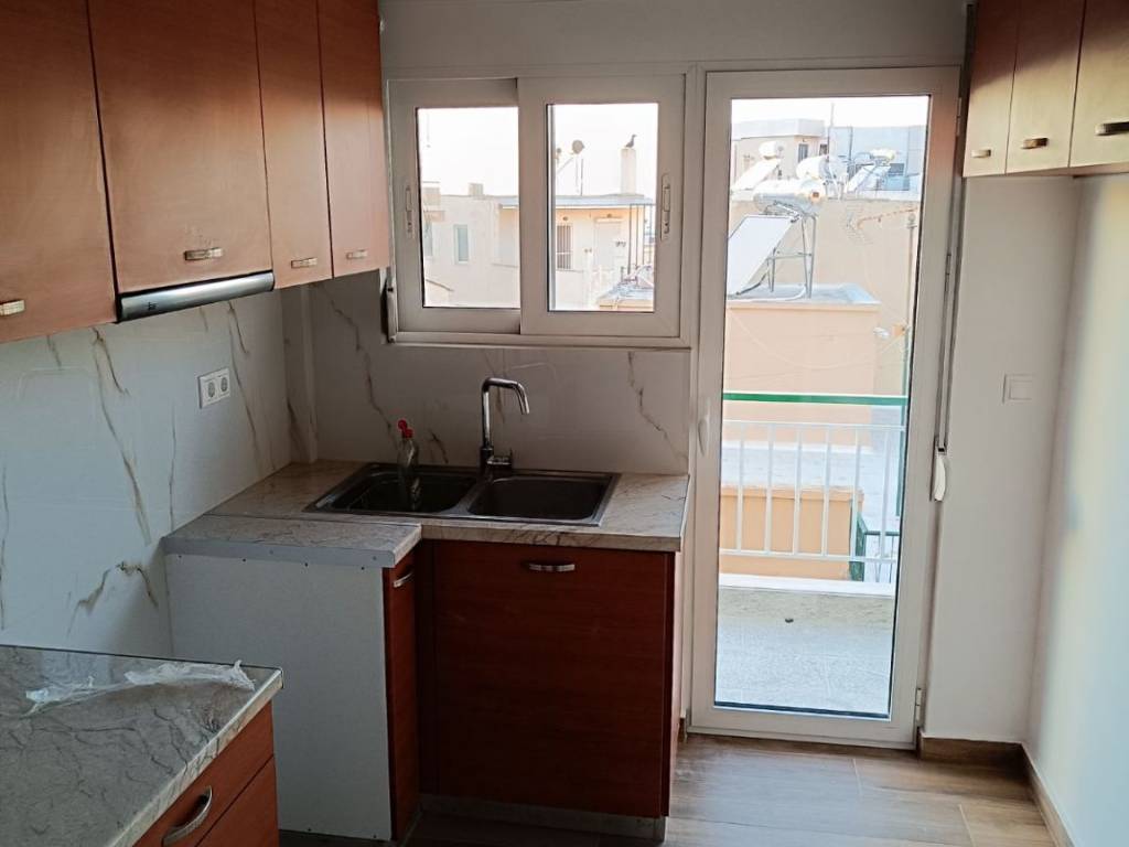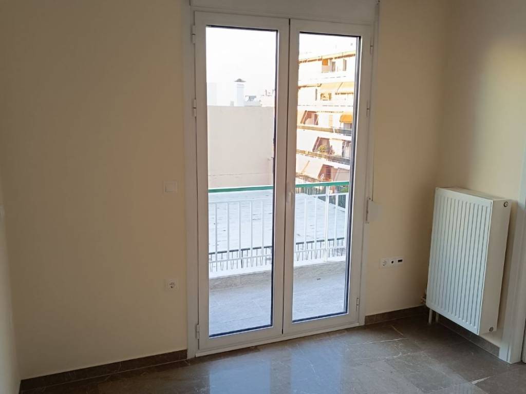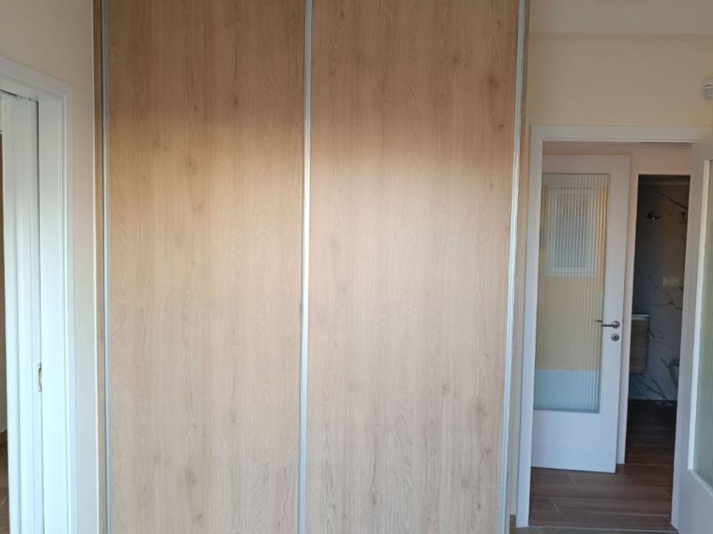 Apartment of 2nd flour, 66 sq.m. but spacious with small corridor, renovation 2025, new low-consumption heat pump Midea A+++/A++ (COP (7ºC - 35ºC) 4,7), with no shared heating costs for the apartment, 3 new low-consumption Midea Xtreme Save Α+++ (SEER 8.8, SCOP 4.6-6) inverter air conditioners, solar water heater, energy certificate B class, aluminum frames with double glazing, screens and roller shutters in imitation walnut, brand new plumbing, brand new electrical installation/facilities, security alarm system, network with internet - data - antenna center, security door, floors with wood imitation tiles, new radiators, layout: hall, living room, second bedroom with brand new wardrobe, hallway, kitchen, bathroom, wc, loft and first bedroom with wardrobe, balcony in living room - second bedroom - kitchen - first bedroom, in a three-story apartment building with few shared costs, with elevator, quiet and bright apartment, three-year contract with fixed price.