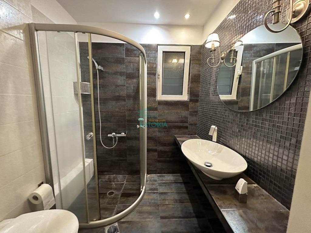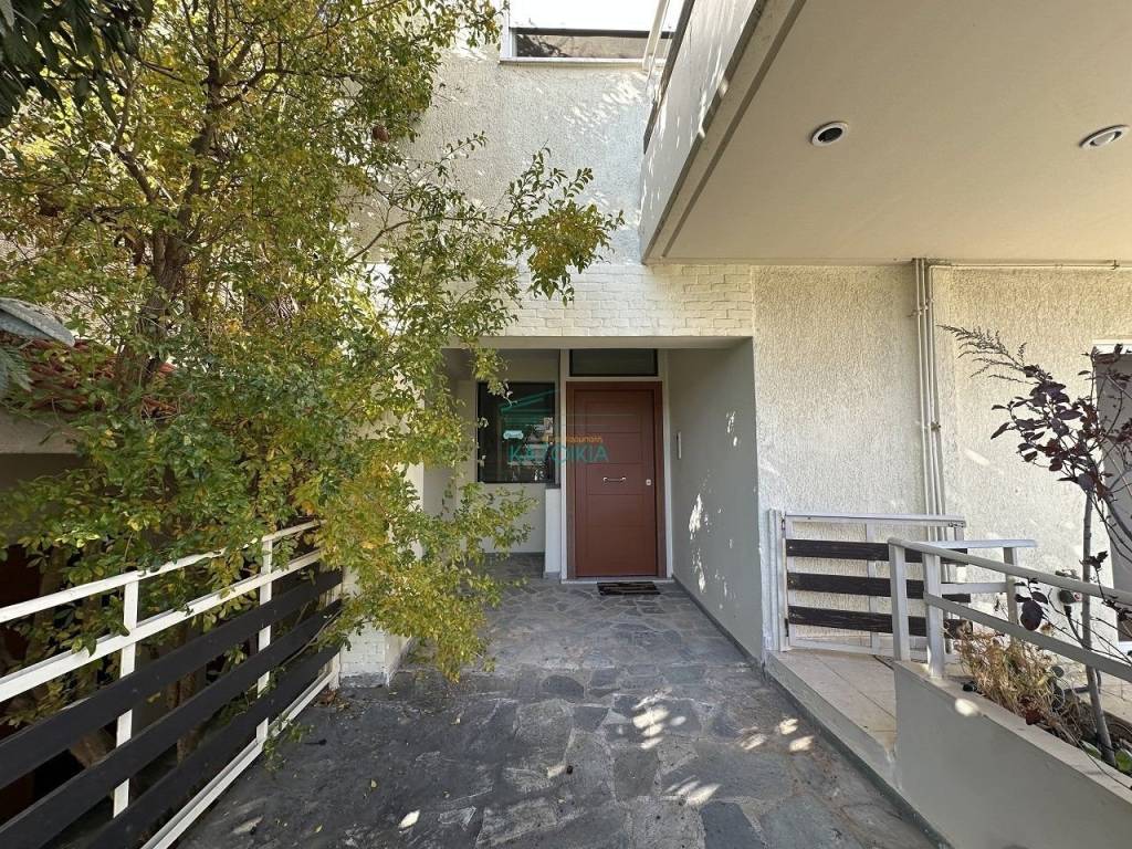 Gerakas luxury maisonette of 140 sq m. on two levels, in a quiet and privileged area (Gargittos), built in 2010, with autonomous operation and large outdoor areas. The ground floor level of 85 sq m. includes a comfortable and bright reception area with fireplace, open kitchen, three bedrooms with direct access to a large 45 sq m terrace, as well as a stylish bathroom with shower. The lower level of 56 sq m., which communicates with an internal staircase but also has a second independent entrance, hosts a spacious playroom, many storage spaces/wardrobes, a space configured as a kitchenette (second kitchen) and a large bathroom with jacuzzi. This level can also function as an independent apartment. The residence also has: • Large private garden of approximately 200 sq m. • Storage room • Underground garage • Possibility of building a swimming pool in the garden. An ideal choice for a family, but also for those looking for a residence with independence, comfort and the possibility of hospitality or professional use, Price 300.000€, code 58309