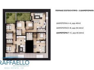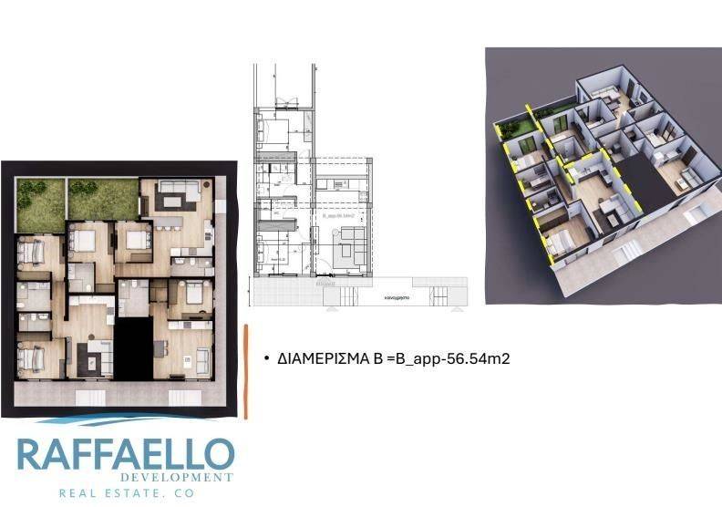 Ενιαίος επαγγελματικός χώρος ισογείου, ο οποίος έχει διαμορφωθεί σε τρεις ανεξάρτητες ενότητες με σκοπό τη δημιουργία τριών διαμερισμάτων. Τα δύο από αυτά διαθέτουν έξοδο σε κήπο αποκλειστικής χρήσης. Τα διαμερίσματα δύναται να παραδοθούν είτε πλήρως επιπλωμένα είτε ημιτελή, ανάλογα με τις ανάγκες και τις προτιμήσεις του εκάστοτε ενδιαφερόμενου αγοραστή. Αντίστοιχα θα διαμορφώνεται και η τελική τιμή πώλησης του κάθε ακινήτου. Πρόκειται για αλλαγή χρήσης από επαγγελματικό χώρο σε κατοικίες, με σκοπό την αξιοποίησή τους για πώληση στο πλαίσιο του προγράμματος Golden Visa. Διαθέσιμα τα διαμερίσματα: Β - 56.54 τμ. Γ - 60.64 τμ. Έχει πουληθεί το Α - 40 τμ.