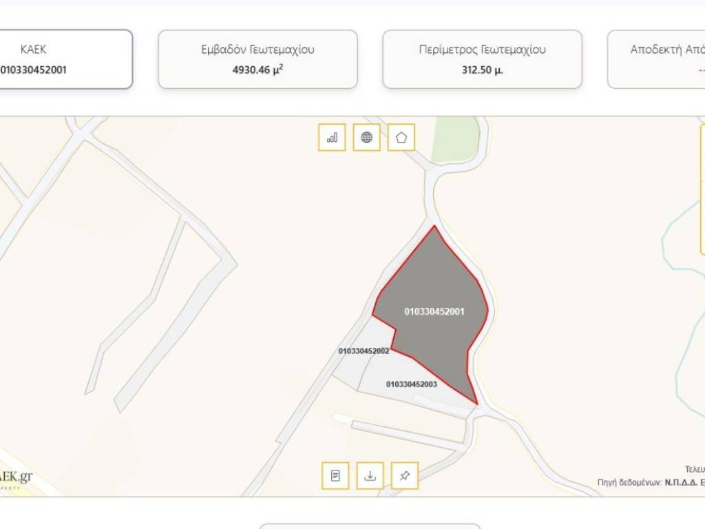 Προς πώληση Γη στην Μακύνεια Αιτωλοακαρνανίας, παραθαλάσσιο χωριό της Ναυπακτίας Πρόκειται για οικόπεδο εντός σχεδίου πόλεως, συνολικής επιφάνειας 4.930,40 τ.μ., το οποίο διατίθεται προς πώληση ενιαίο ή και τμηματικά σε μικρότερα οικόπεδα. Σ.Κ. 60% - Δ. 400 μέγιστο Ύψος 7,50 +2 μ σκεπή Το ακίνητο βρίσκεται σε πολύ κοντινή απόσταση από την Παλαιά Εθνική Οδό, μόλις 4,5 χλμ. από το Αντίρριο, με άμεση πρόσβαση στην Ιόνια Οδό, ενώ απέχει περίπου 1 χλμ. από την παραλία. Η περιοχή αποτελεί παραθεριστικό προορισμό, με αυξημένη κίνηση τους καλοκαιρινούς μήνες, γεγονός που καθιστά το ακίνητο ιδανικό τόσο για κατασκευή κατοικιών όσο και για τουριστική εκμετάλλευση.