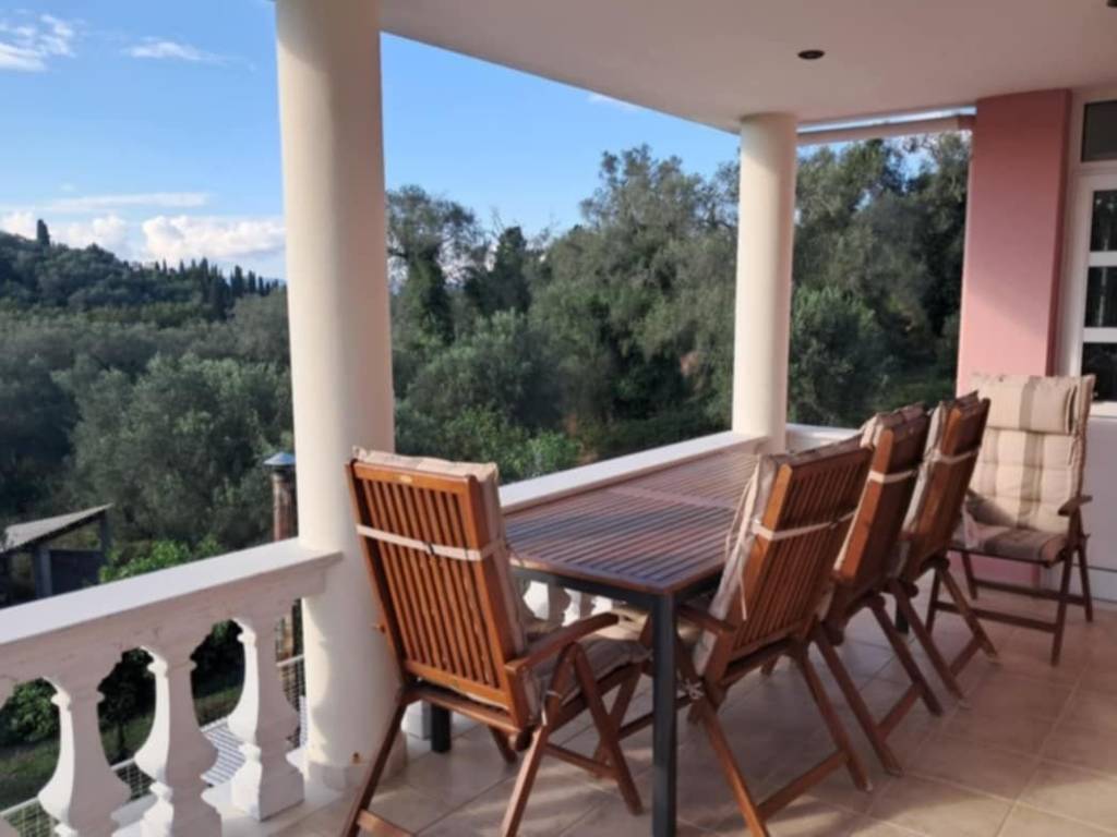 Agios Prokopios, detached house 272 sq m. 3 levels on a plot of 606 sq m. The house consists of a maisonette 171 sq m. On the ground floor (101.84 sq m.) there is a single dining – living room with fireplace, separate kitchen, one bedroom and bathroom. On the upper floor (69.27 sq m.) there are 3 comfortable bedrooms and a large bathroom. The basement (101.84 sq m. ground floor due to the slope of the plot) consists of 2 independent residences: An apartment (69.28 sq m.) which has a living room with fireplace, kitchen, 2 bedrooms and a bathroom. A studio apartment (32.56 sq m.) with one bedroom and a bathroom. The property has large verandas, aluminum windows, security door, central oil heating, air conditioning, storage space and parking space. It is located in a beautiful part of the area, a quiet neighborhood with permanent residents and has easy access from the main asphalt road. Agios Prokopios is a picturesque village built on a hill, in a lush green landscape, surrounded by the Corfiot olive grove. It is located almost in the center of Corfu, approximately 9.5 km. southwest of the old town of Corfu, 8 km. from the airport, 5km. from Achilleion and in a short distance from many beaches.