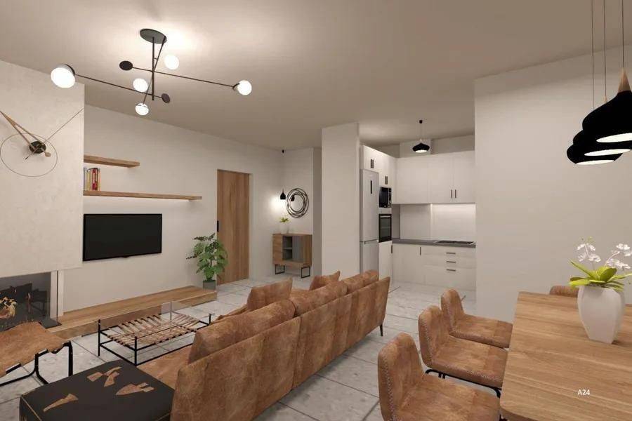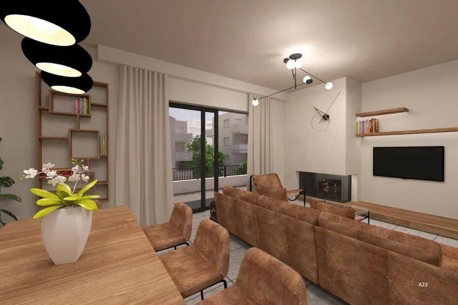 Agia Paraskevi (Attica - Northern Suburbs), Paradisos - Floor Apartment 90sqm bedrooms 2, levels 1, 2nd, newly built, year built 2025, energy class A, living room, kitchen, bathroom, wc, heating type: autonomous (fan coil), parking covered, quiet, dual aspect apartment, luminous, unobstructed view, frontage, painted, storage space 8sqm, solar heater, fireplace, balconies, elevator, garden, garden 8sqm, thermal shut-off frames, double glazed windows, ceramic tiles floors, secure door, within city plan, residential zone, eastern orientation.