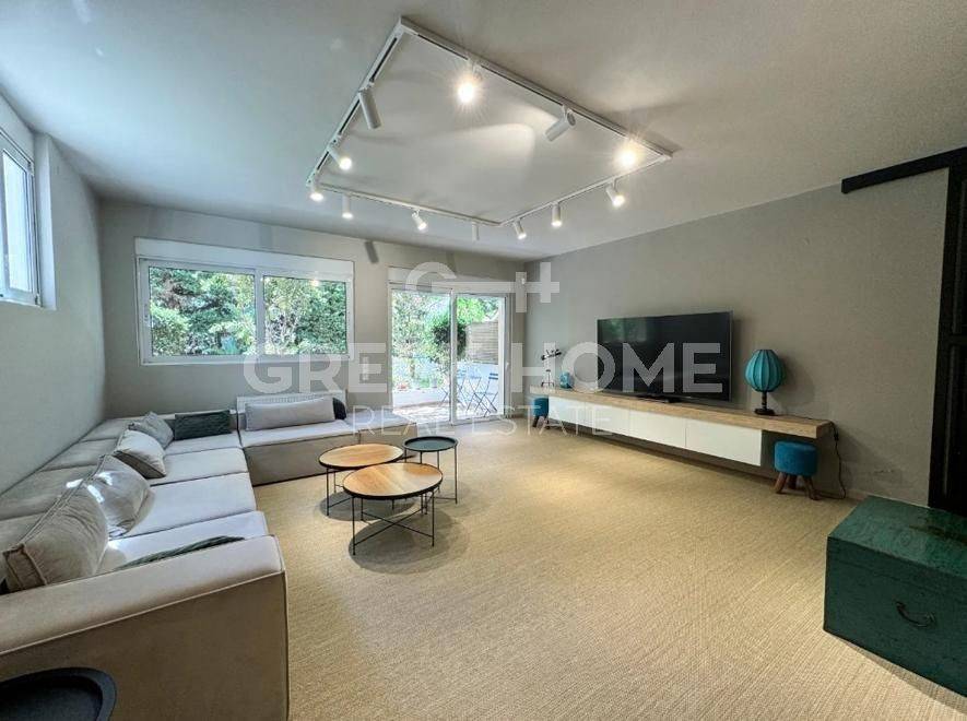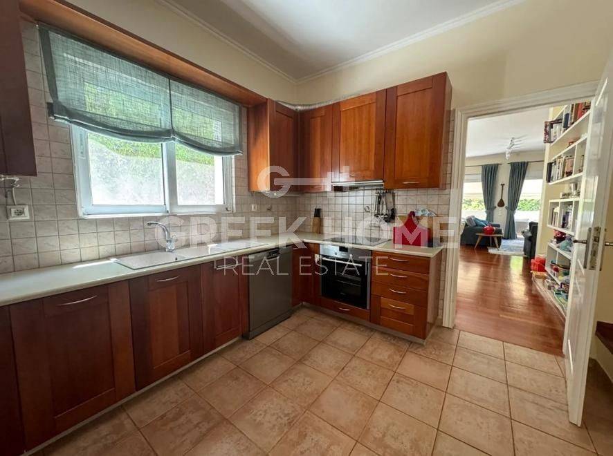 Voula, Pigadakia - Tangent Maisonette 281sqm plot 390sqm, bedrooms 4, levels 3, ground floor - 1st - 2nd, excellent condition, year built 2002, energy class C, living room, kitchen, 3 bathrooms, 2 wc, heating type: autonomous (oil), air condition, parking covered,2, quiet, dual aspect apartment, luminous, unobstructed view view, frontage, storage space, solar heater, fireplace, balconies, large balconies, tents, garden, garden 270sqm, aluminum frames, double glazed windows, door screen, wood floors, separate kitchen, night electricity discount rate, secure door, video doorbell, luxurious, internal staircase, internet, pets allowed, investment property.