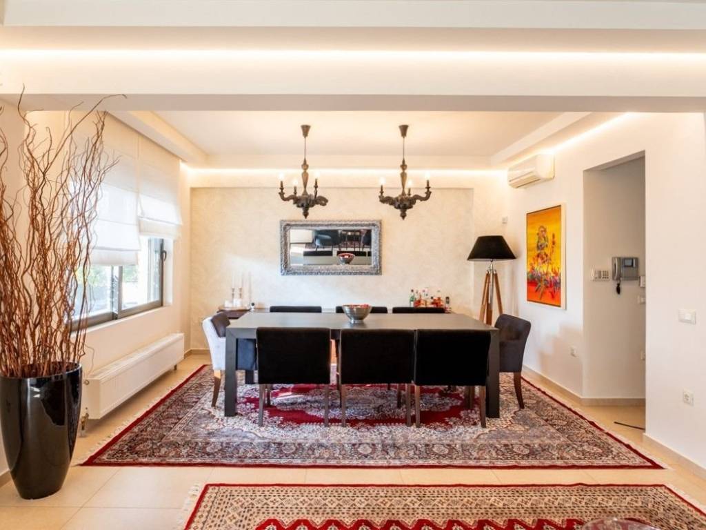 On a very quiet street in the Gerakas neighborhood, this elegant 3-level maisonette, measuring 233 sq.m., was built in 2005 and renovated in 2025 with taste and luxurious materials. On the ground floor we find a spacious living room and dining room with a separate kitchen with corian countertops and a guest W.C. On the first floor we find the three bedrooms, one of which is a master with its own bathroom, while a second bathroom serves the remaining 2 bedrooms. The space has very good quality wooden parquet. In the basement we find an excellently designed playroom area that is autonomous from the rest of the house, as it includes a kitchenette, bathroom and laundry area. The basement has direct access from the closed parking. Also in the basement we have 2 separate storage rooms. Finally, the property has a separate 8.5 sq.m. attic that can be used either as a storage room within the house or as an office space. The property is an ideal choice for a family looking for comfort and tranquility in an ever-developing area. This area of Gerakas is characterized by low-rise development, small apartment buildings and single-family homes, wide streets, and ample greenery. It is a neighborhood that offers calm and safety, making it especially attractive for families as well as for those seeking quality of life close to central Athens. It is near schools and has many sports facilities. One of the area’s main advantages is relatively easy access to major road arteries and public transport. A short distance away is the Doukissis Plakentias Metro Station, which serves both Metro Line 3 and the Suburban Railway, facilitating connections to central Athens, the airport, and the northern suburbs. The combination of quietness, good street layout, greenery, and immediate access to key infrastructure makes the neighborhood a particularly attractive residential choice, especially for those seeking a peaceful environment without being far from the city’s amenities.