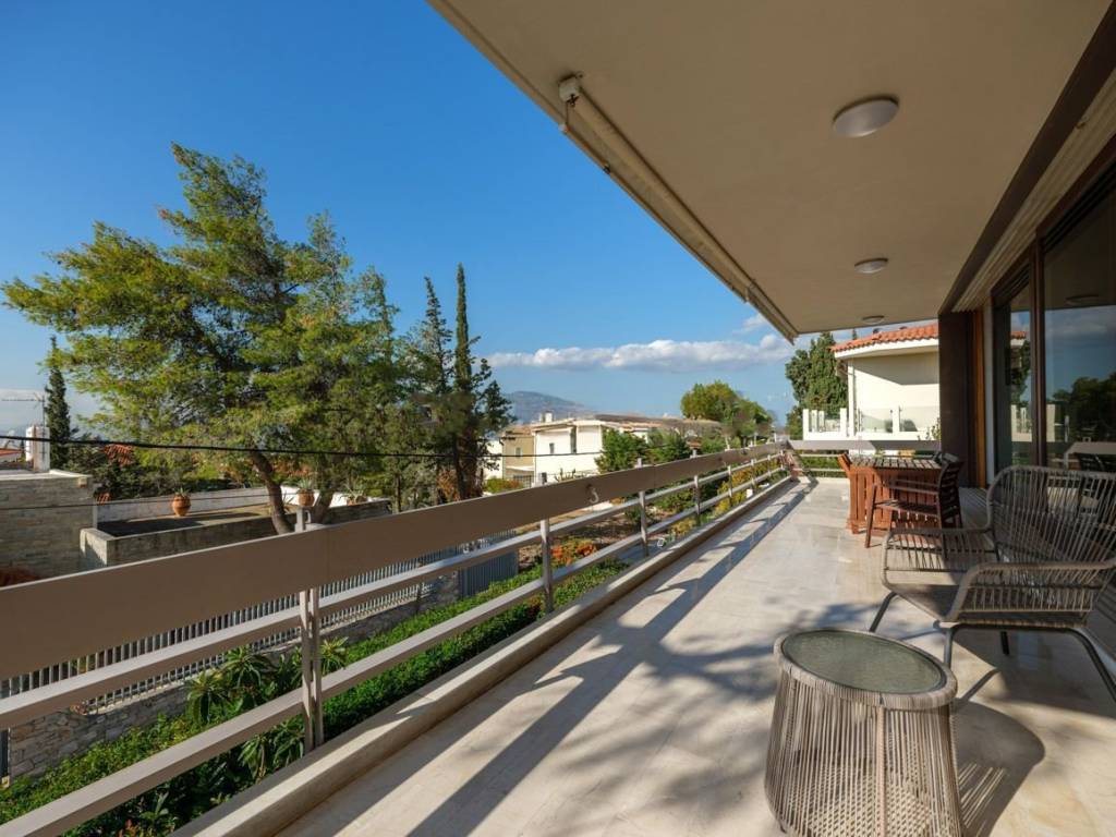 Engel & Völkers presents this luminous, luxury furnished 200 sqm apartment,recently renovated, occupying the entire 1st floor of a two-story building. Centrally located, on the borders of Kefalari-Politeia, this exceptional residence blends elegance, comfort, and breathtaking views of the city, mountains, and sea. The apartment boasts expansive living spaces, including two main living rooms with fireplace and an impressive dining area. A marble-paved balcony with unobstructed views of Mount Parnitha and the sea provides a serene setting for outdoor relaxation. An adjacent, everyday sitting room with an additional fireplace complements the closed kitchen, which is fitted with new appliances and offers direct access to a verdant yard. Three bright bedrooms, each with access to a tree-shaded backyard, add to the tranquil atmosphere. The property is complete with two stylish bathrooms and a guest WC. Premium features include luxurious furnishings, wooden floors, double-glazed wooden window frames, a security entrance door, alarm installation, inverter air-conditioning units in all rooms, autonomous oil heating, solar heating, peripheral lighting, security cameras, fiber internet while it is surrounded by a well groomed garden with trees. This fully furnished apartment is available for rent for a flexible period of 1 to 3 years, making it an ideal choice for business executives relocating to Athens for work in the northern suburbs. Located in a quiet and secure neighborhood near Kefalari-Politeia borders this residence offers a comfortable and stylish living space. Its prime location provides easy access to upscale restaurants, bars, sports clubs and essential amenities, ensuring a convenient and enjoyable stay. Kifissia is one of the most prestigious suburbs of Northern Athens, a quiet, green oasis and a commercial hub, just 12 kilometers away from the city centre. Unique features: Kifissia, home to wealthy Athenian families in the post-War period has retained its genteel, old world charms and remains one of the most sought-after addresses. A refreshingly green area with several parks, large public squares, an upscale open-air shopping district with haute couture brands and international labels, banks, refined restaurants, trendy bars, sports clubs and fitness centres. It is close to most international schools and attracts a lot of foreign residents. Its cosmopolitan nature reflects in the speciality supermarkets and food stores that abound. Two of Greece’s largest malls are just a 5-minute drive away. Accessibility: Kifissia is easily accessible by a regular train and bus service to the centre of Athens. The international airport is a 45-minute drive via the Attiki Odos