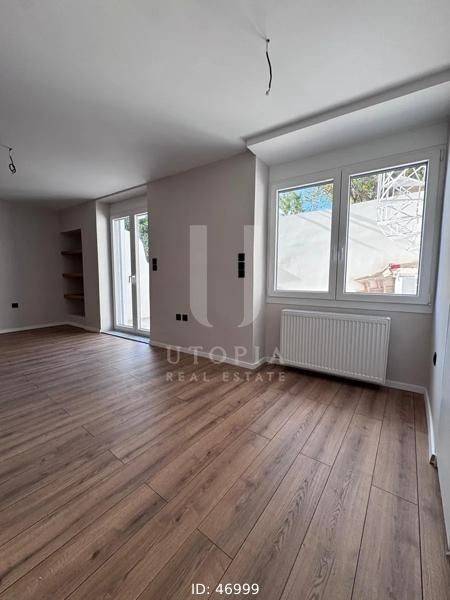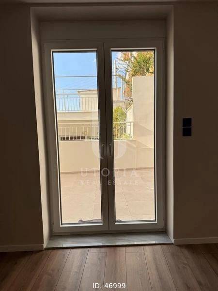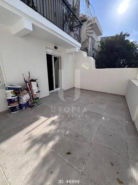 Ymittos - Apartment 58sqm unfurnished, bedroom, levels 1, ground floor, fully renovated, year built 1978, renovation year 2026, energy class E, living room, hall, kitchen, bathroom, heating type: central (oil), quiet, dual aspect apartment, luminous, solar heater, garden, aluminum frames, double glazed windows, wood floors, separate kitchen, secure door, residential zone, access from asphalt, close to market (up to 500m).