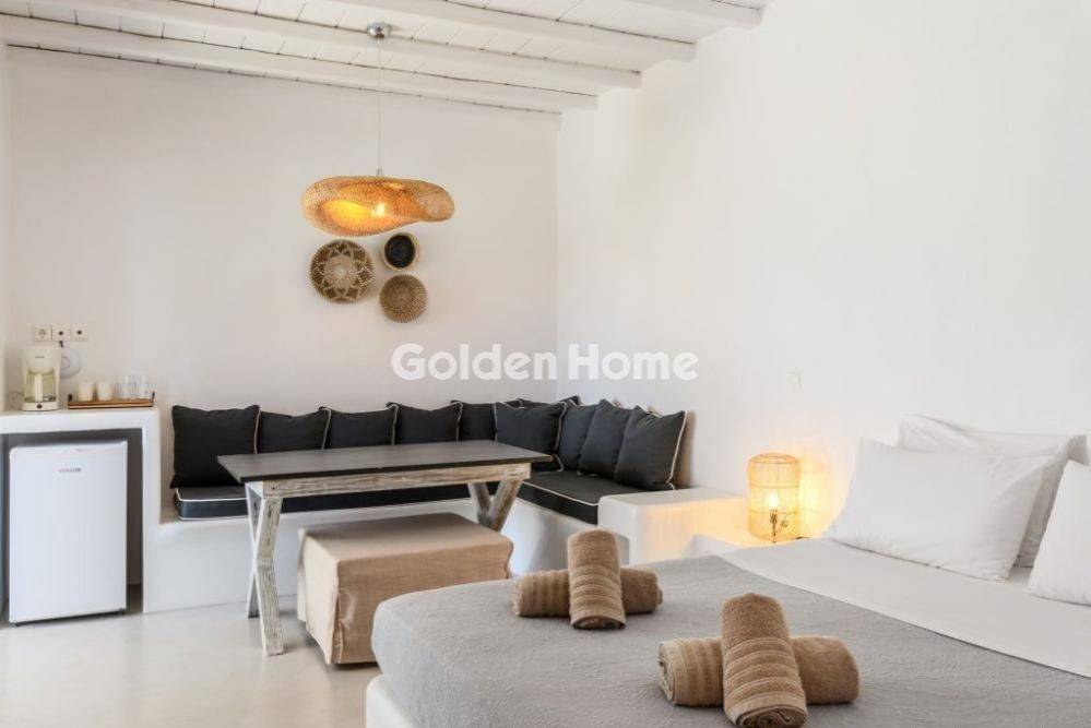 Seasonal Rental – Mykonos, Kalafatis Area Small studio for two (2) guests, located within a residential complex with a shared swimming pool. The suite is available for a 6-month seasonal rental, with full payment required in advance. It has been carefully designed to offer guests absolute comfort, combining modern aesthetics, clean lines, soft color tones, light-toned furniture, and natural materials, creating a calm and relaxing atmosphere. Located on the ground floor, it features an open space with a comfortable built-in queen-size double bed, dining area, sofa, fully equipped kitchen, private bathroom, and access to a shared courtyard. Every detail is thoughtfully designed to ensure an enjoyable and memorable stay. The suite offers access to a shared courtyard, refrigerator, toaster, electric kettle, coffee maker and espresso machine, satellite dish, flat-screen TV, iron, air conditioning, wardrobe, hairdryer, beauty and personal care set, as well as complimentary Wi-Fi. For Rent, studio, Full Bathrooms: 1, Living Area: 27 Sqm, Rooms: 1, Year Built: 2015, Holiday Home, Air Conditioning, Swimming Pool, View, Balcony, Furnished, Garden, Solar Water Heating, Garage, Floor Number: Ground Floor, Facade, Pets Allowed, Kitchens: 1, Joinery: Wooden, Floor Type: Stone, Lot Size: 1000 Sqm, Accessible For Disabled, Heating Controller: Autonomous, Heating Medium: Current, Road Type: Asphalt, Zoning: Residential, Energy Class: B, Orientation: M, Current: Single Phase, Distance Sea: 1500